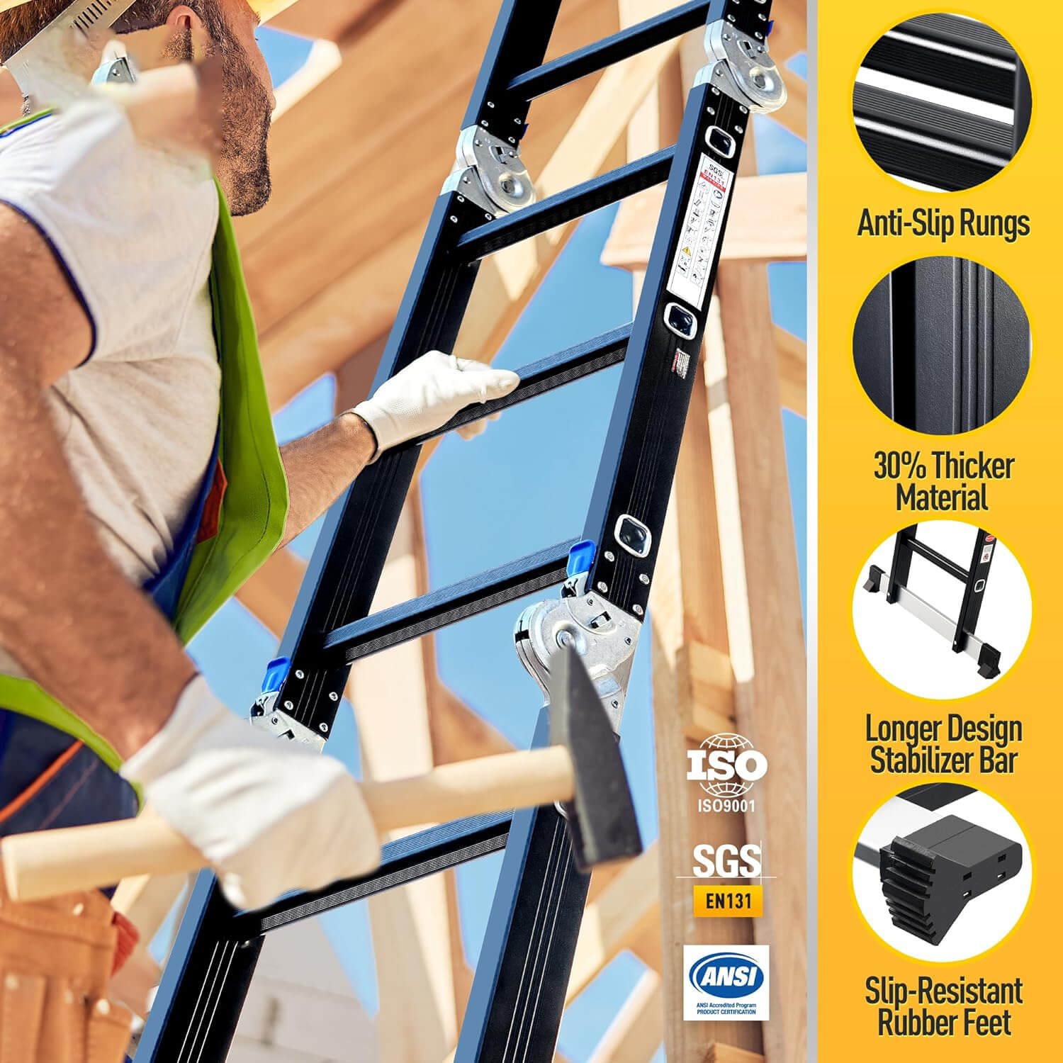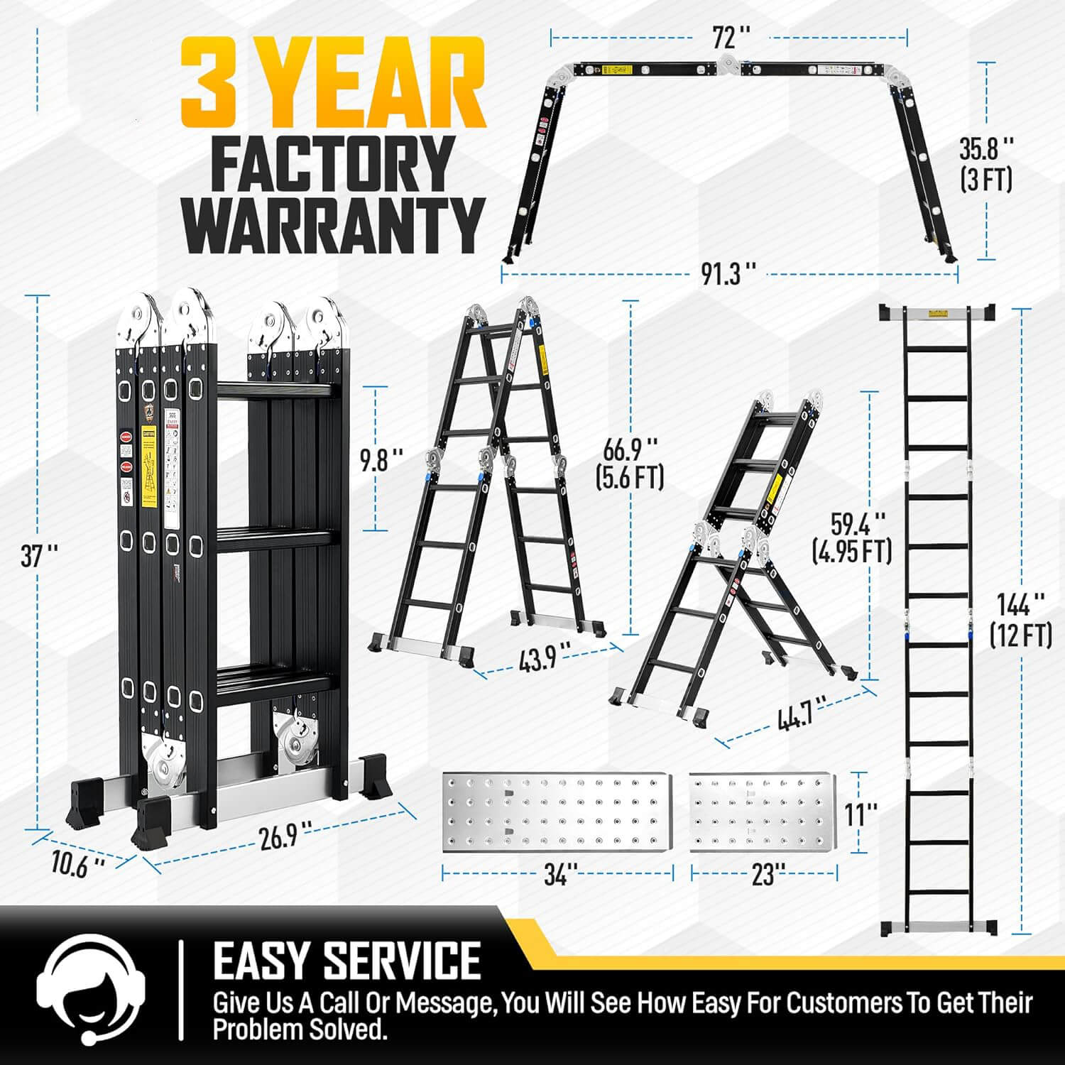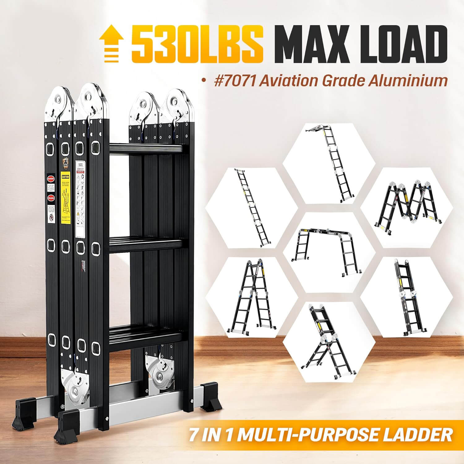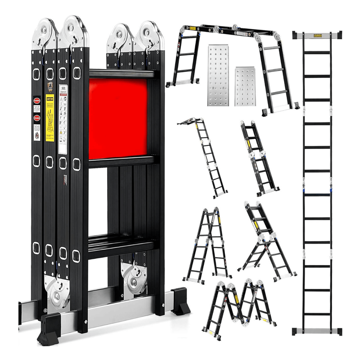 Ladder 7 in 1 Multi-Purpose Ladder Aluminium Extension Ladder 12Ft Folding Adjustable Telescoping Step Ladder Heavy Duty Ladders Meet SGS EN 131 Standard 530lbs