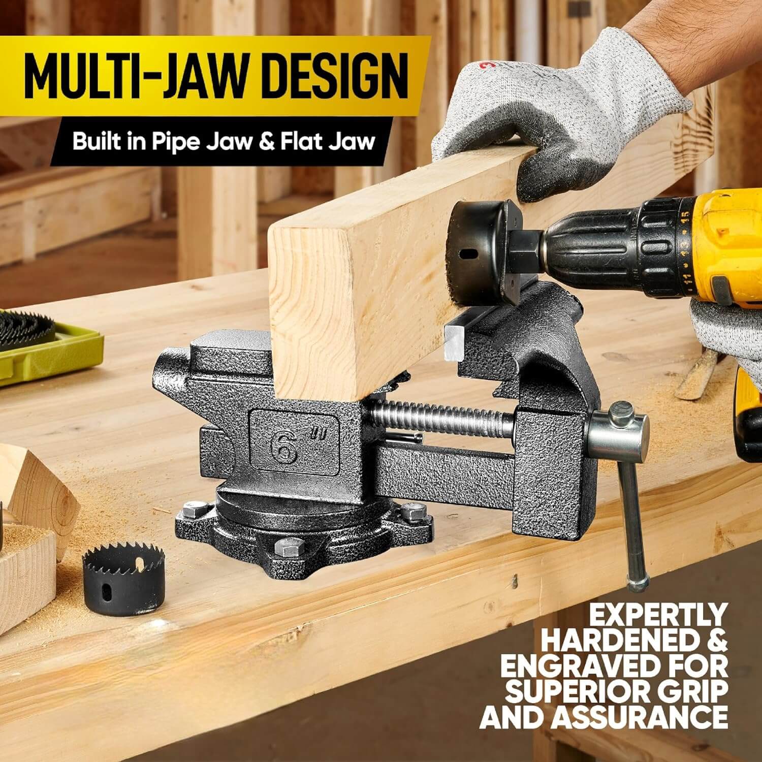 [Multi-Jaw Function] The Multi-Jaw can fit flat materials and pipe or tube work you have. The jaw is hardened and hammered to increase its hardness and strength, providing long-lasting durability and reliable grip.