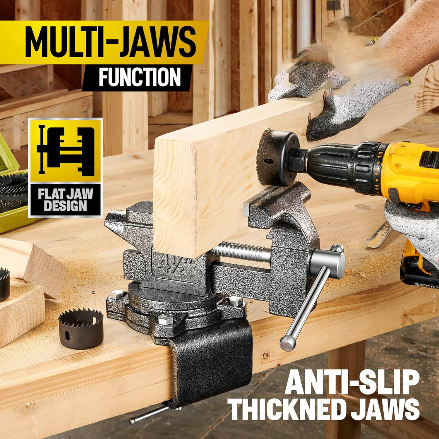 [Upgraded] Multi-Purpose Bench Vise 4-1/2", Table Vice For Workbench, Universal Clamping Vise With Heavy Duty Cast Iron, Multi-Jaw, Swivel Base, Easy Adjustment for Woodworking, Workshop DIY Uses