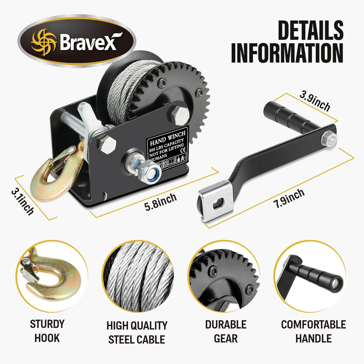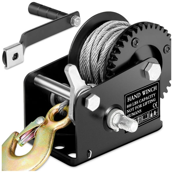 【Capacidad】: El cabrestante de manivela manual puede soportar hasta 800 libras, relación de engranajes 3.2: 1, ideal para muchas aplicaciones de remolques, camiones y botes.