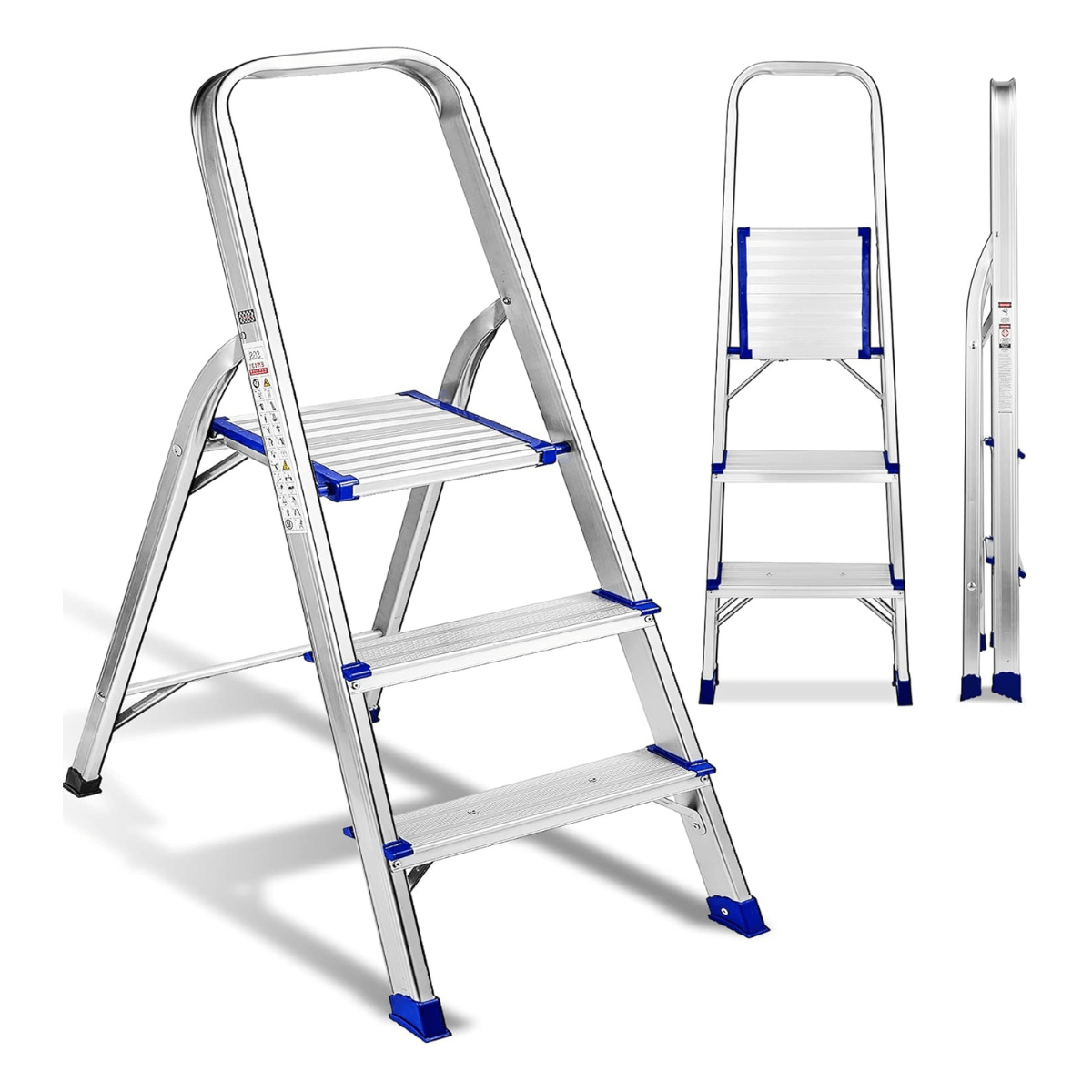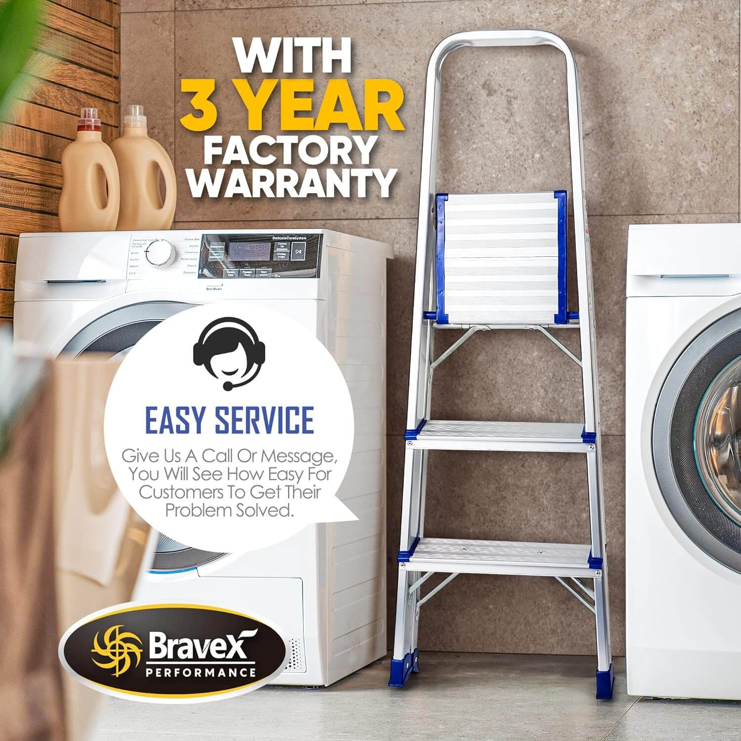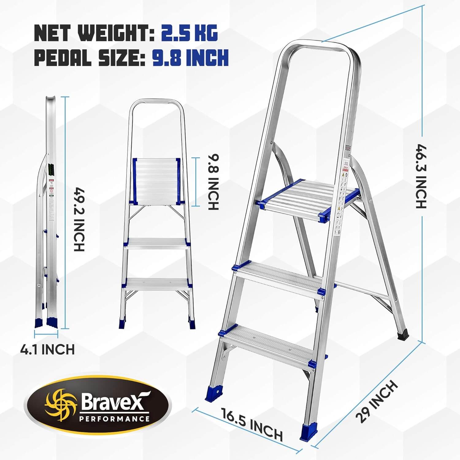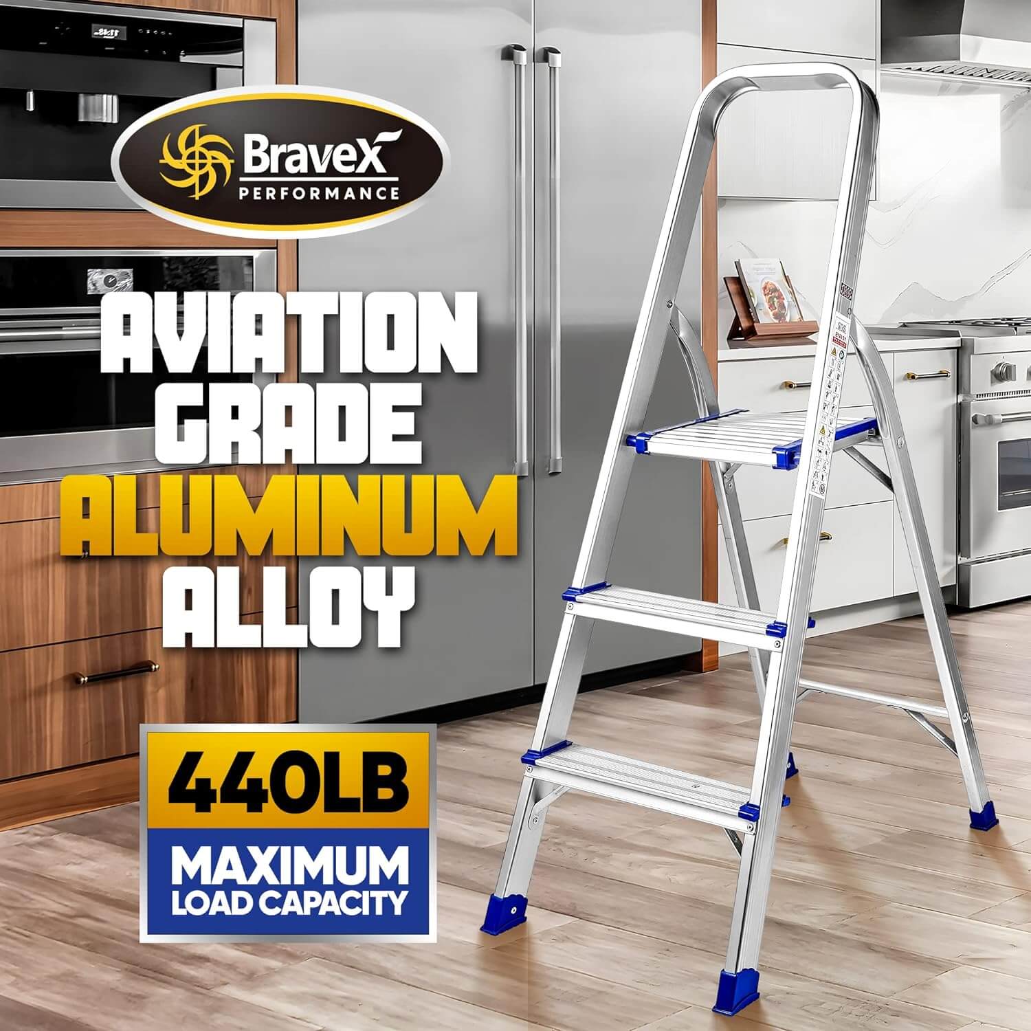 Bravex 3 Step Ladder, Aluminum Folding Step Stool with Anti-Slip Pedal, Portable Step Ladder Stool Lightweight, 200kg/440lb Capacity Multi-use Aviation Aluminum Ladder
