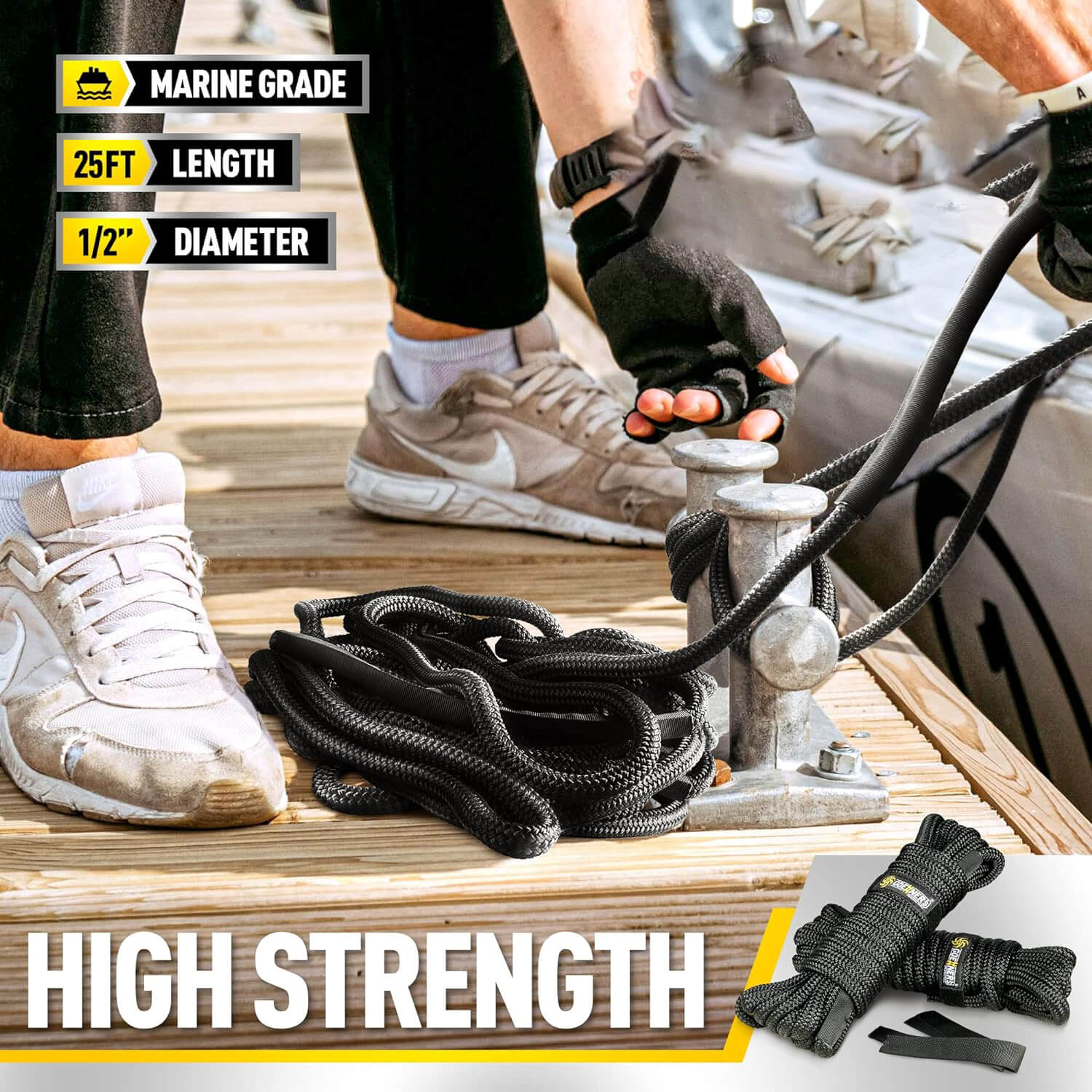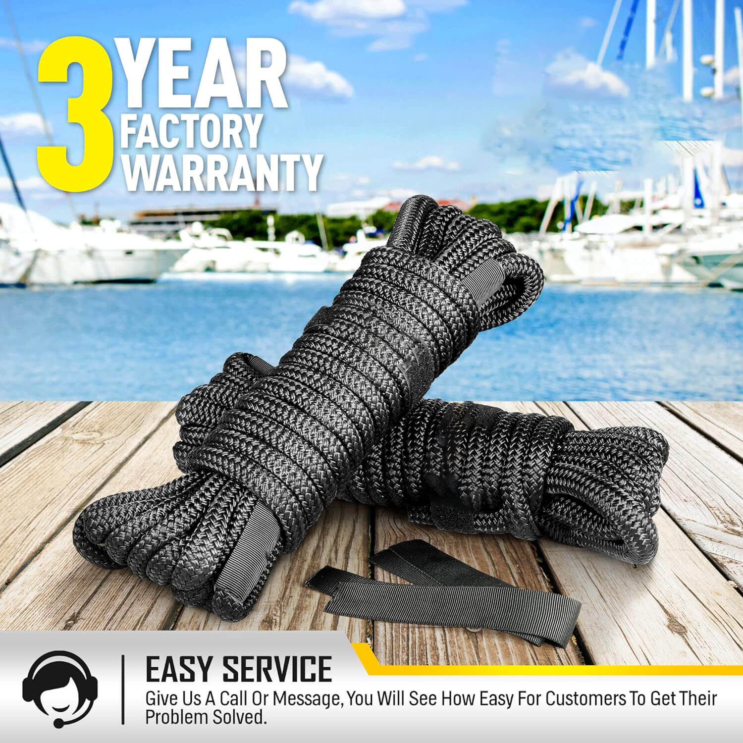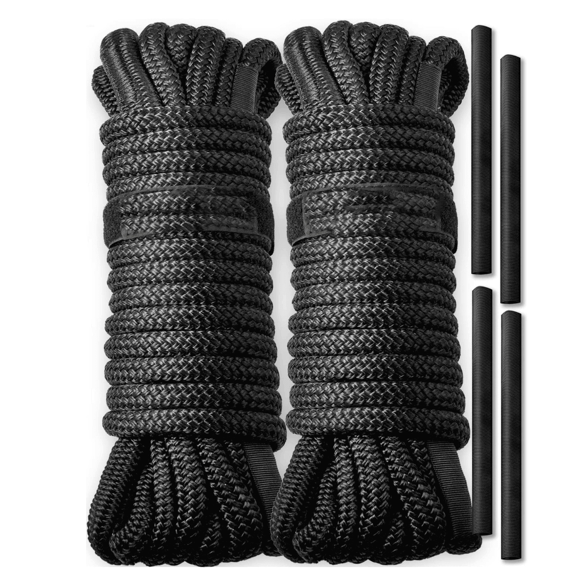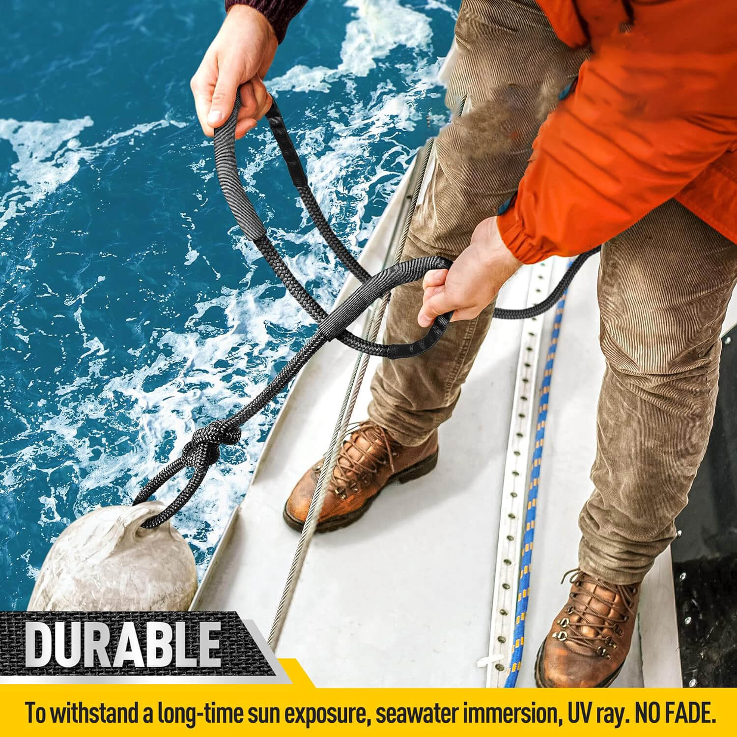 Dock Lines Boat Rope 1/2" or 5/8" 2 Pack 25'/35', Marine Mooring Rope with 12” Spliced Eyelet and 4 Chafe Guards, Low Stretch and High Shock Absorption, Boat Dock Lines for Boats