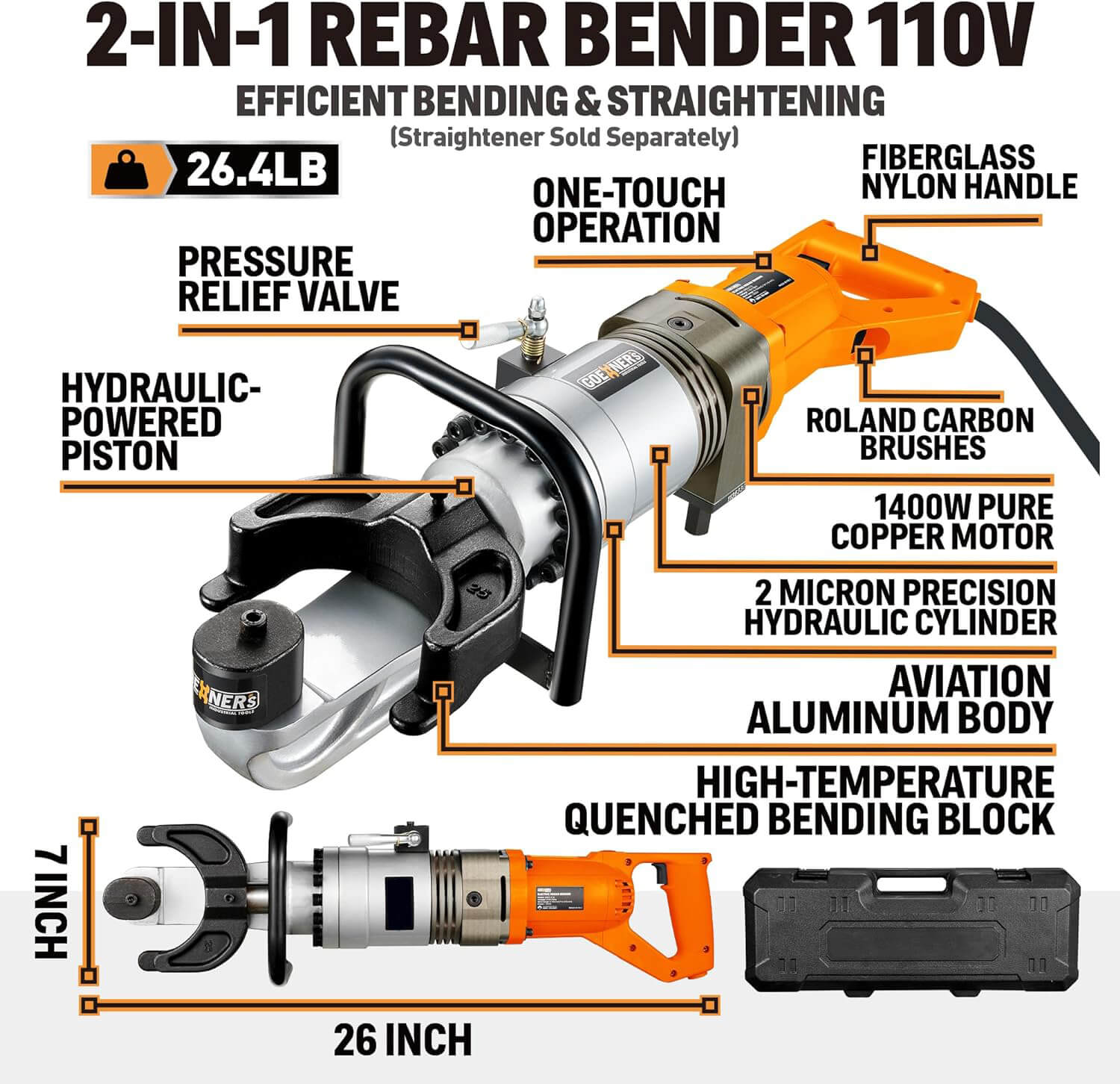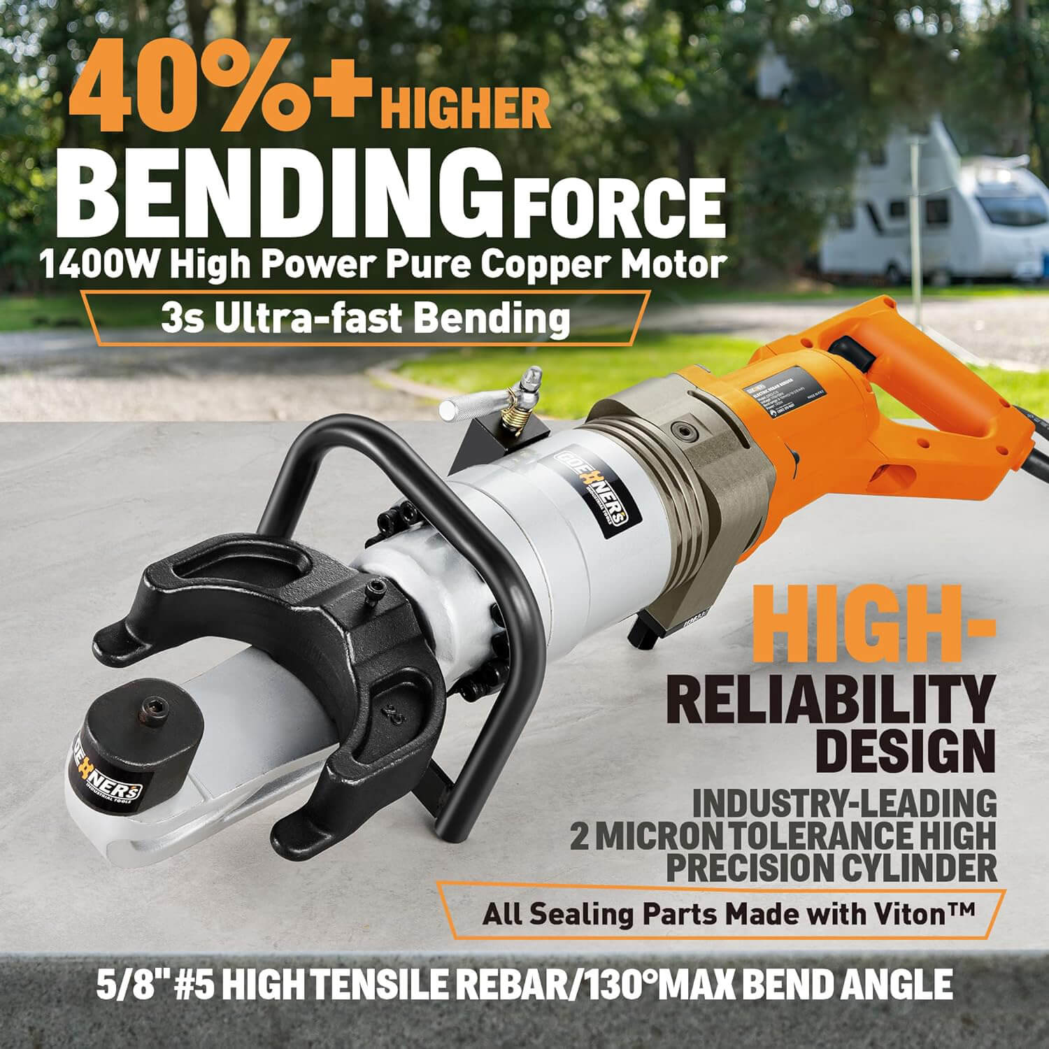 1400W Electric Rebar Bender, Portable Hydraulic Rebar Bending Machine up to 5/8 Inch 16mm #5 Rebar or 7/8 Inch 22mm #7 Rebar, Bending Angle 0-130°, Handheld Steel Rebar Bender Machine with Pure Copper Motor, 110V