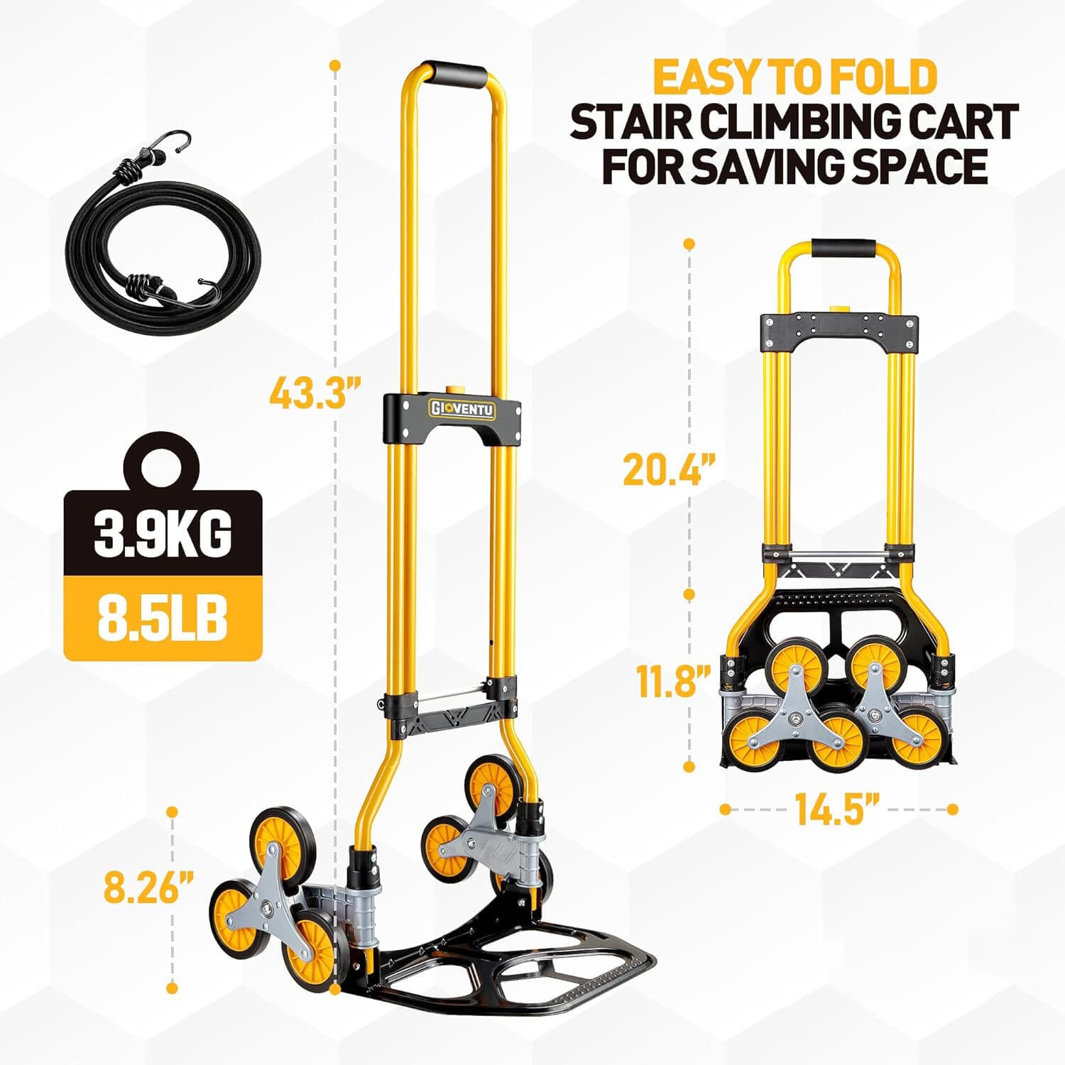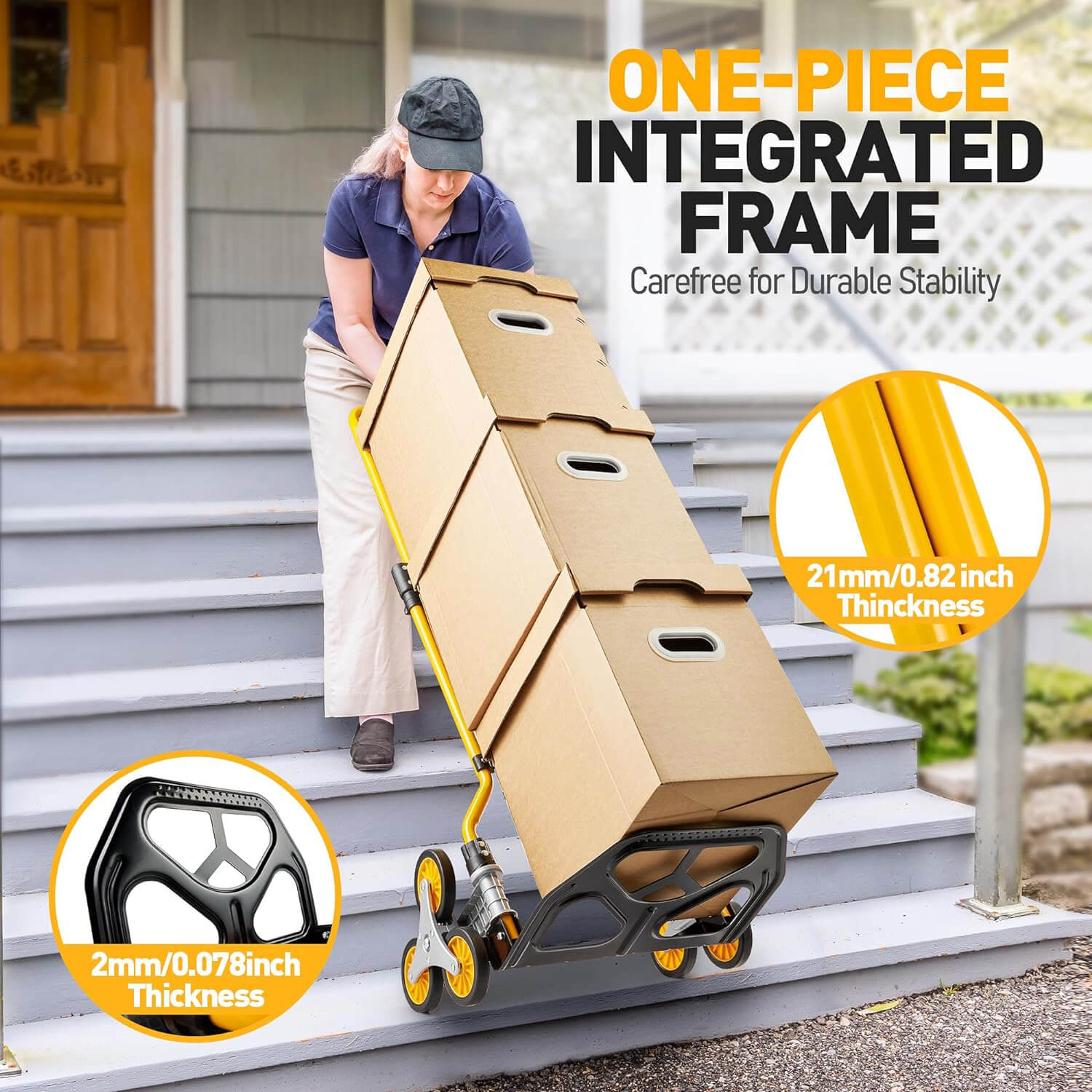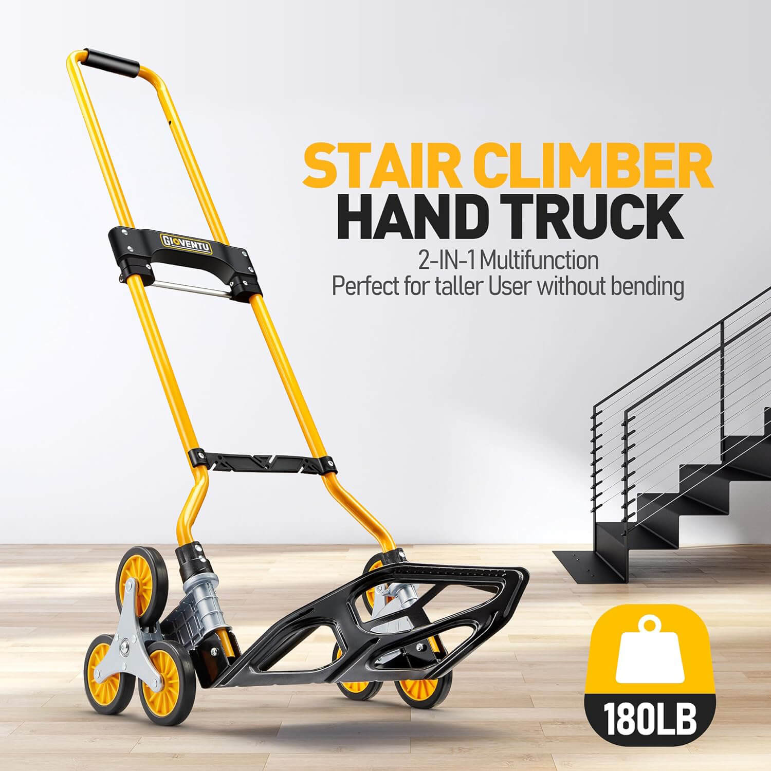 Stair Climbing Hand Truck Dolly, 180 Lb Capacity Foldable Trolley Cart Moving Dolly for Stairs with Telescoping Handle and Rubber Wheels