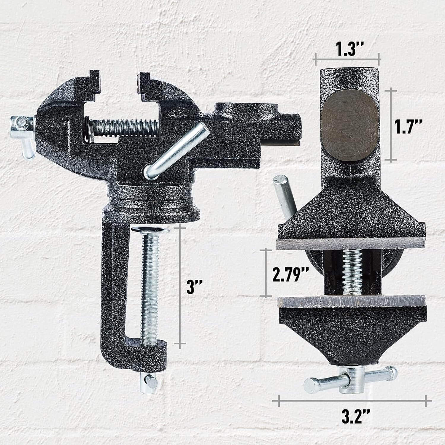 Table Vise or Bench Vise Universal, 360° Swivel Clamp-On Vise Portable Home Vice 3.2'' for Woodworking, Cutting Conduit, Drilling, Metalworking