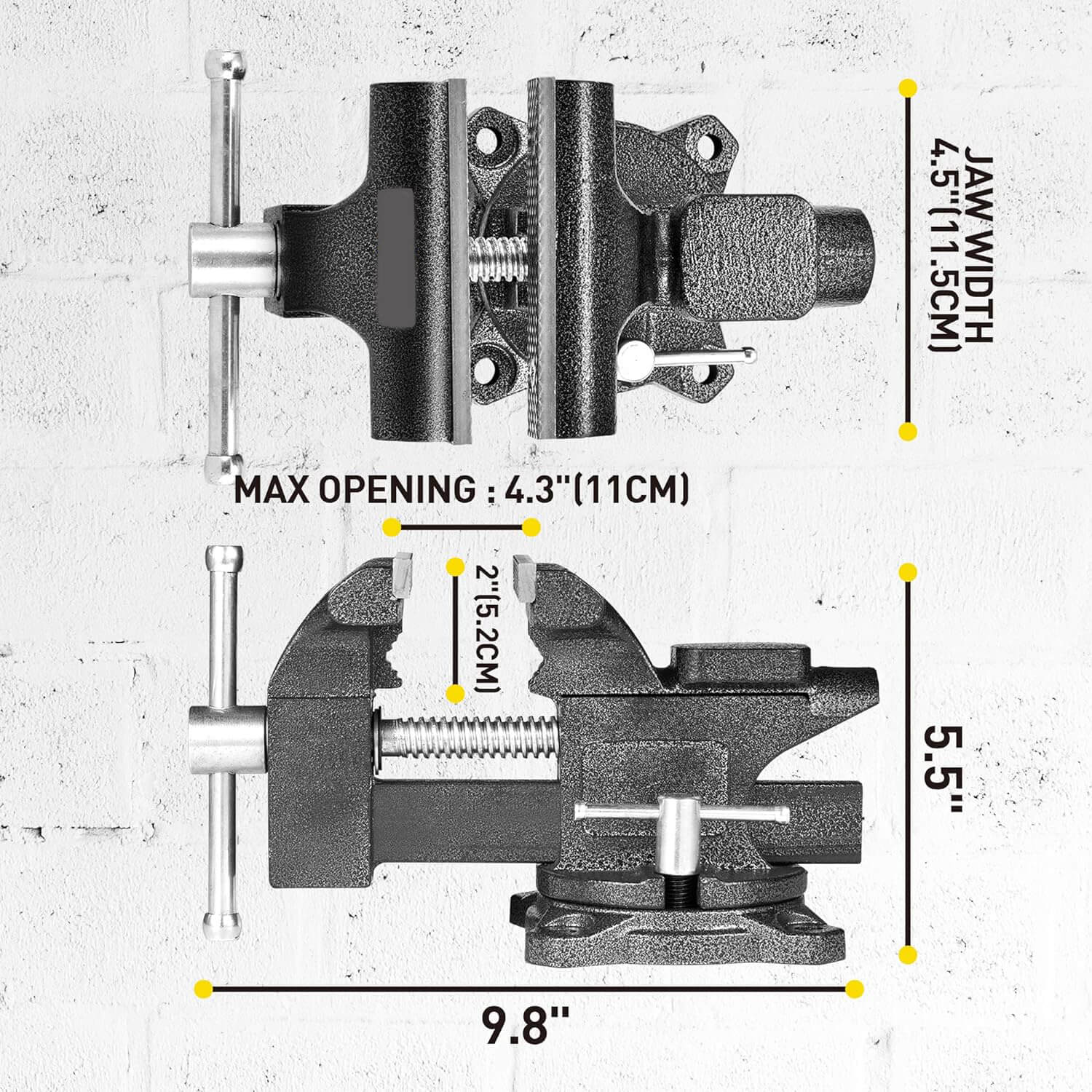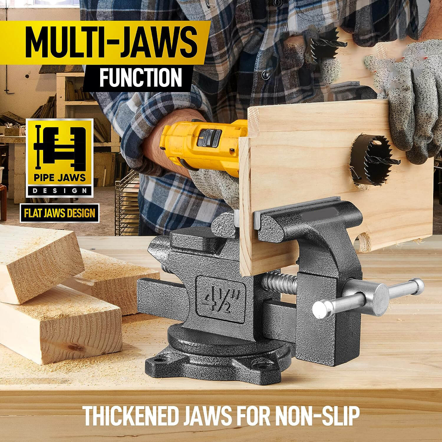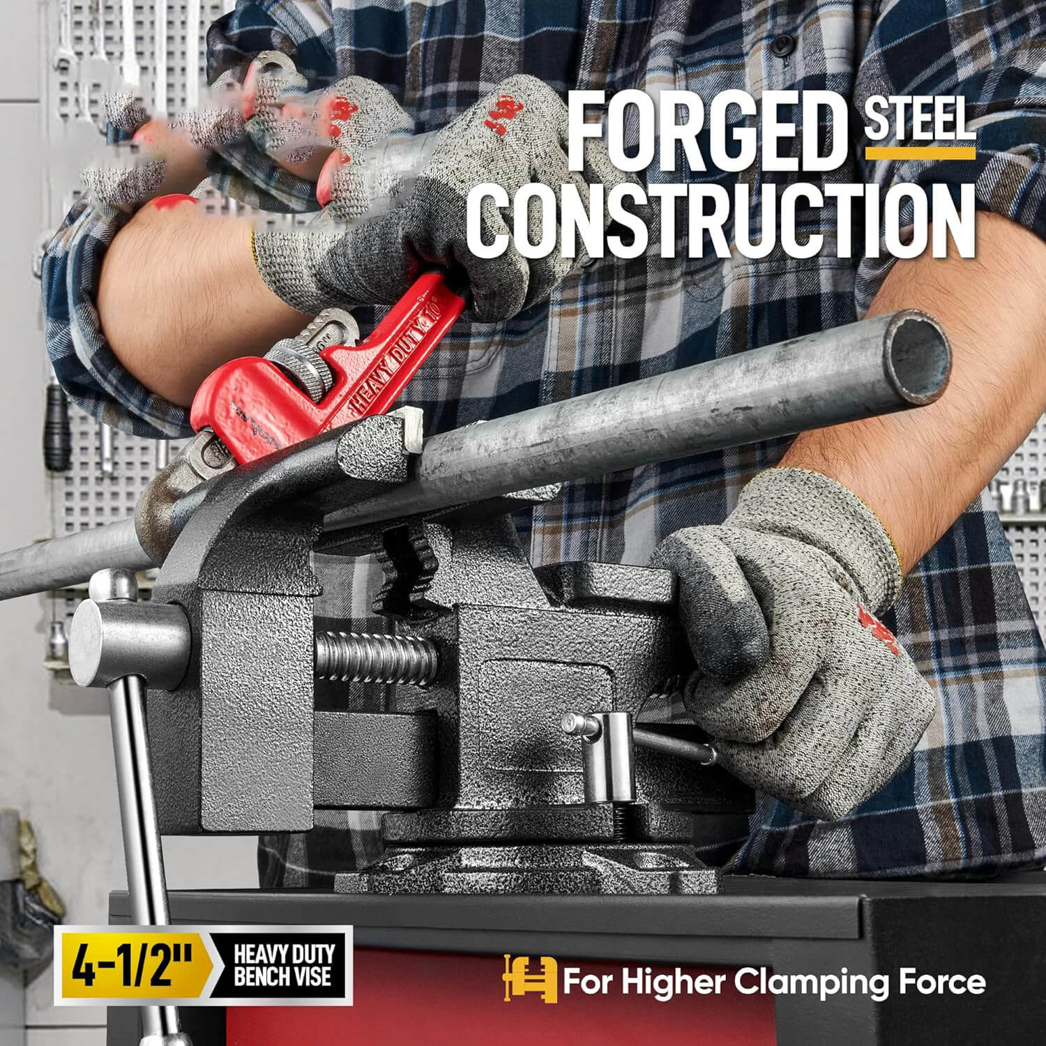 Bench Vise, 4-1/2" Vice for Workbench, Utility Combination Pipe Home Vise with Heavy Duty Forged Steel Construction, Swivel Base Table Vise for Woodworking, Home Workshop Use and DIY Jobs