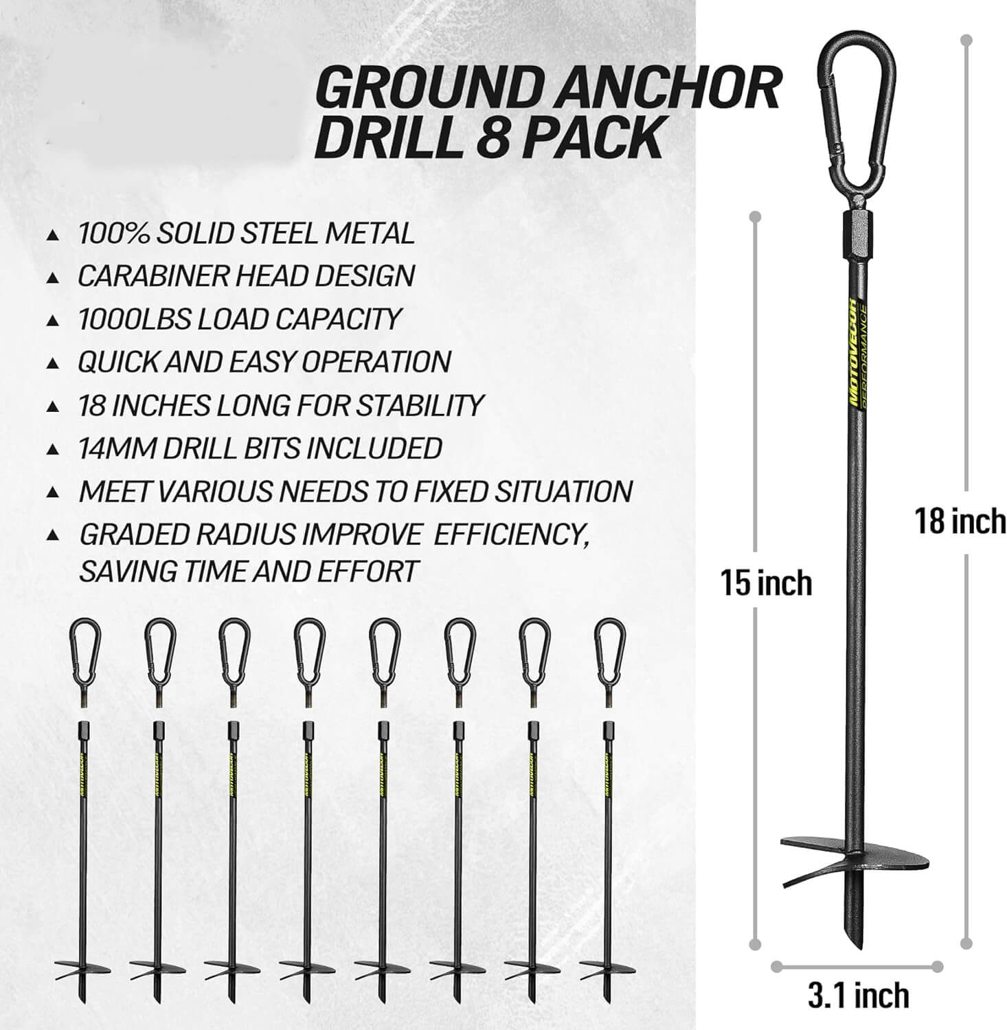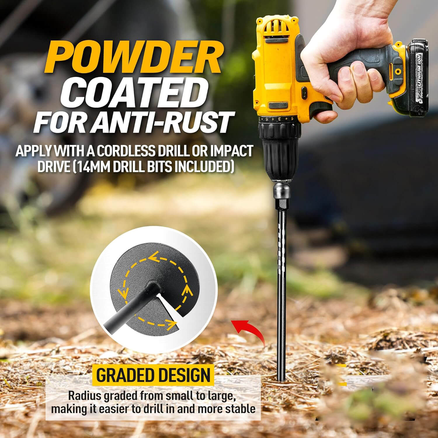 Seamless and Quick Installation: Designed with a graded radius auger, systematically increasing in size, and a sharp, pointed tip, these stakes effortlessly penetrate the ground for swift installation. Achieve a seamless setup by using an electric impact driver or drill (with a 14mm socket) to install each anchor in just 10 seconds.