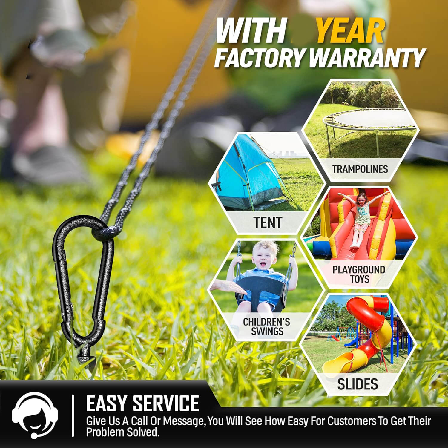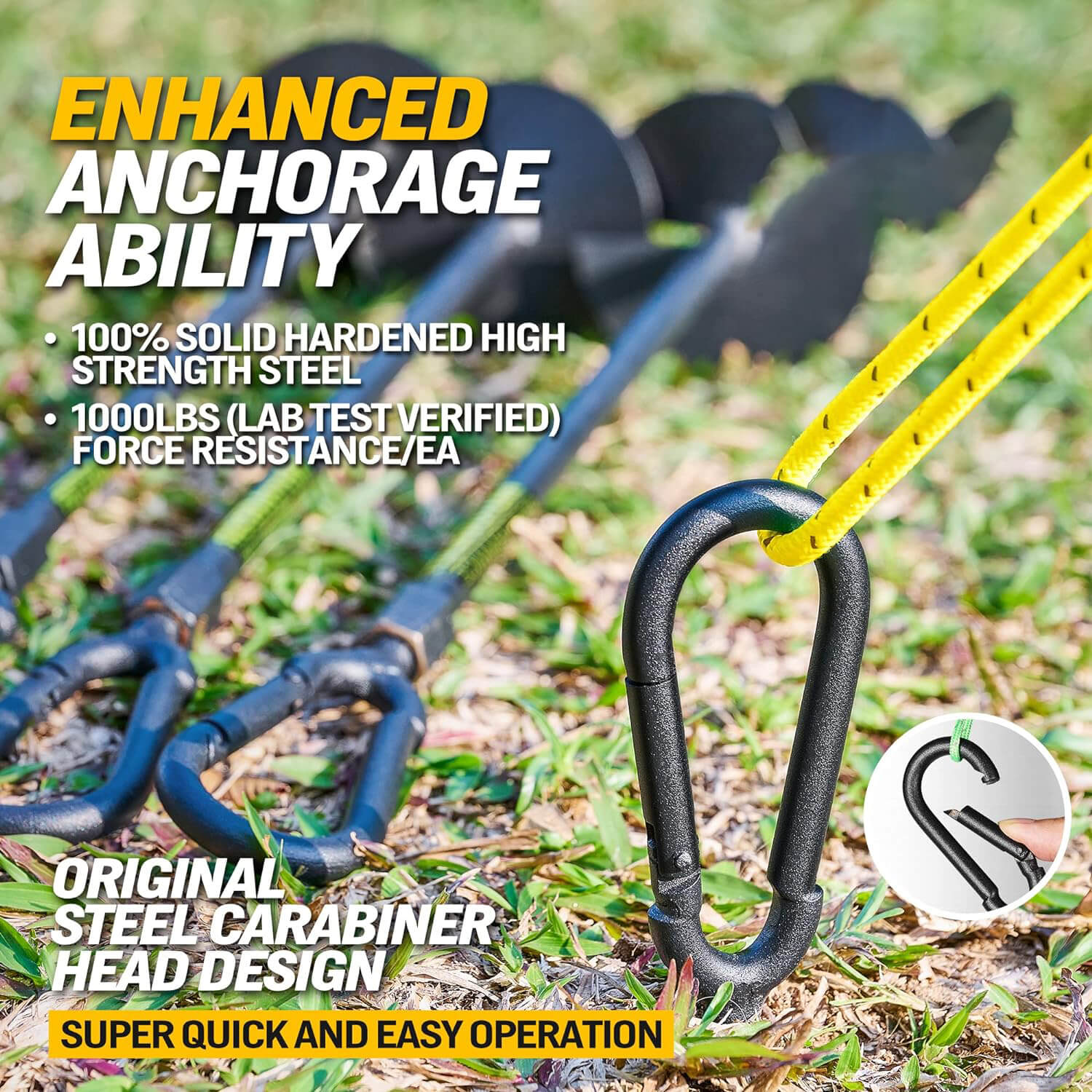 18” Heavy Duty Ground Anchors(1000lbs), Screw in Swing Set Anchors Forged from Tungsten Steel, Detachable Carabiner Design, High Wind Trampoline Stakes for Tents, Trees, Canopies, Sheds Gazebos-8pcs