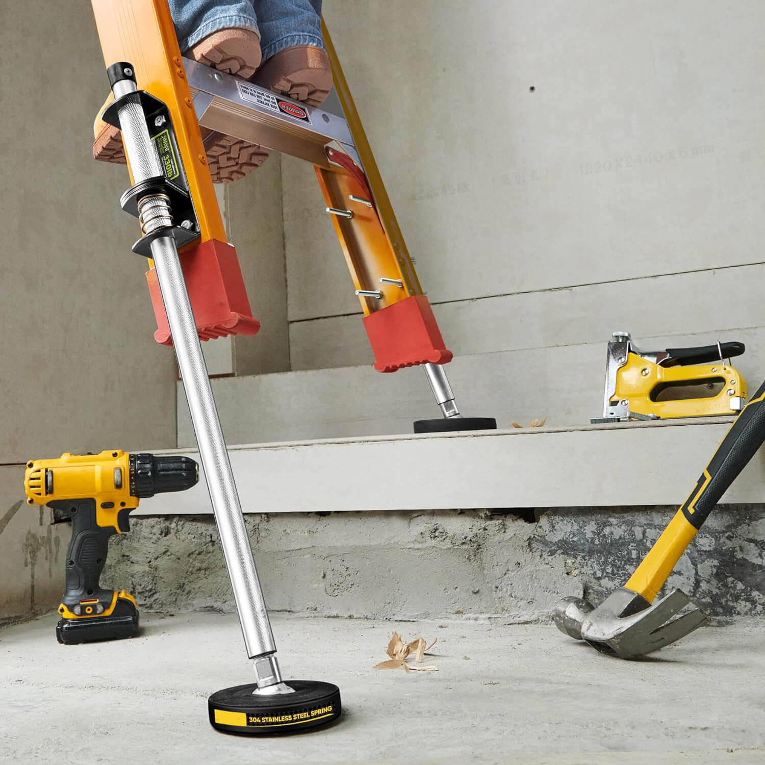 Upgraded Ladder Leveler. Using upgraded high-quality alloy steel, which is firm and durable to ensure the ladder leveler stays stable. The surface of the ladder leveler's pole has engraved anti-skid patterns, which can increase the friction of the movable slider when it is stationary, maximize friction in the locking system, safer and easy to adjust, and hold firm to where you adjust. A galvanized surface allows for resistance to rust and corrosion.