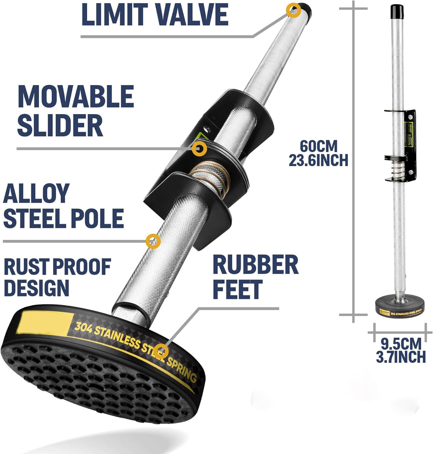 Easy to Install. Just need a drill bit, drill, and install it according to the screw holes on the base. The kit comes with a wrench, which can fine-tune the height of the rubber feet up to a maximum of 1.5cm. Simply press down the locking plate then move the pole up or down. It can be adjusted to any position to lock according to your actual needs. Save your time and improve your efficiency.