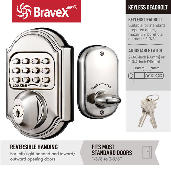 Bravex Commercial Grade MKDZ Keyless Mechanical Heavy Duty Deadbolt Lock