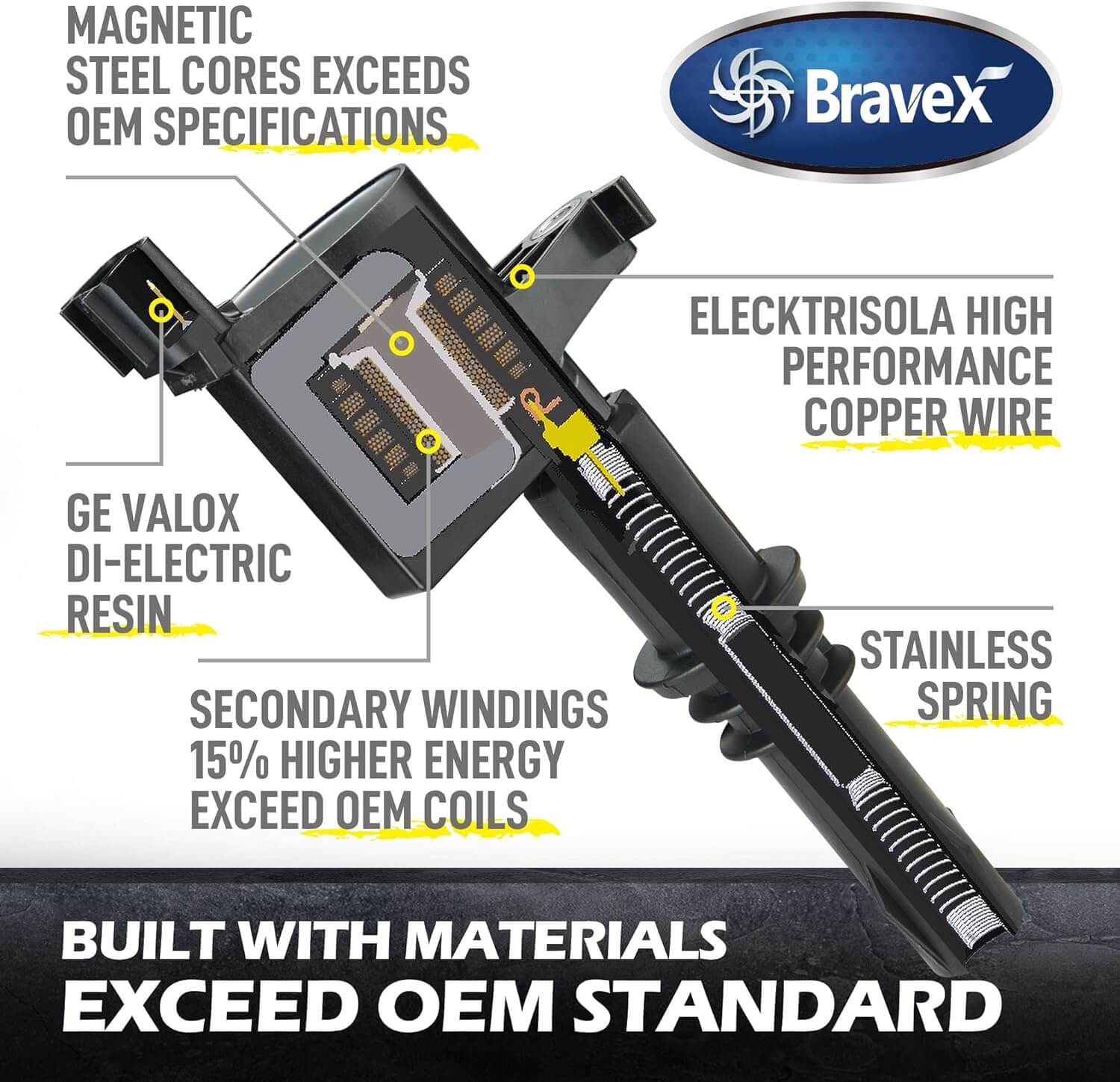 Bravex 8 Pack Straight Boot Ignition Coils 15% More Energy F-150 for Ford Lincoln Mercury V8 V10 4.6l 5.4l 6.8l Compatible with DG511 C1541 FD508-Upgrade (Black)