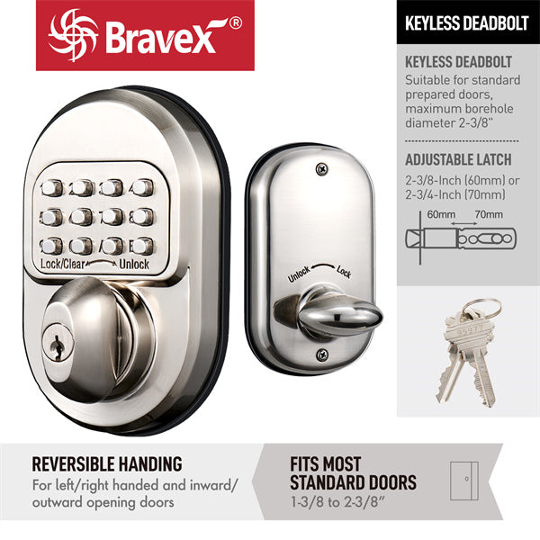 Bravex Commercial Grade MKDZ Keyless Mechanical Heavy Duty Deadbolt Lock