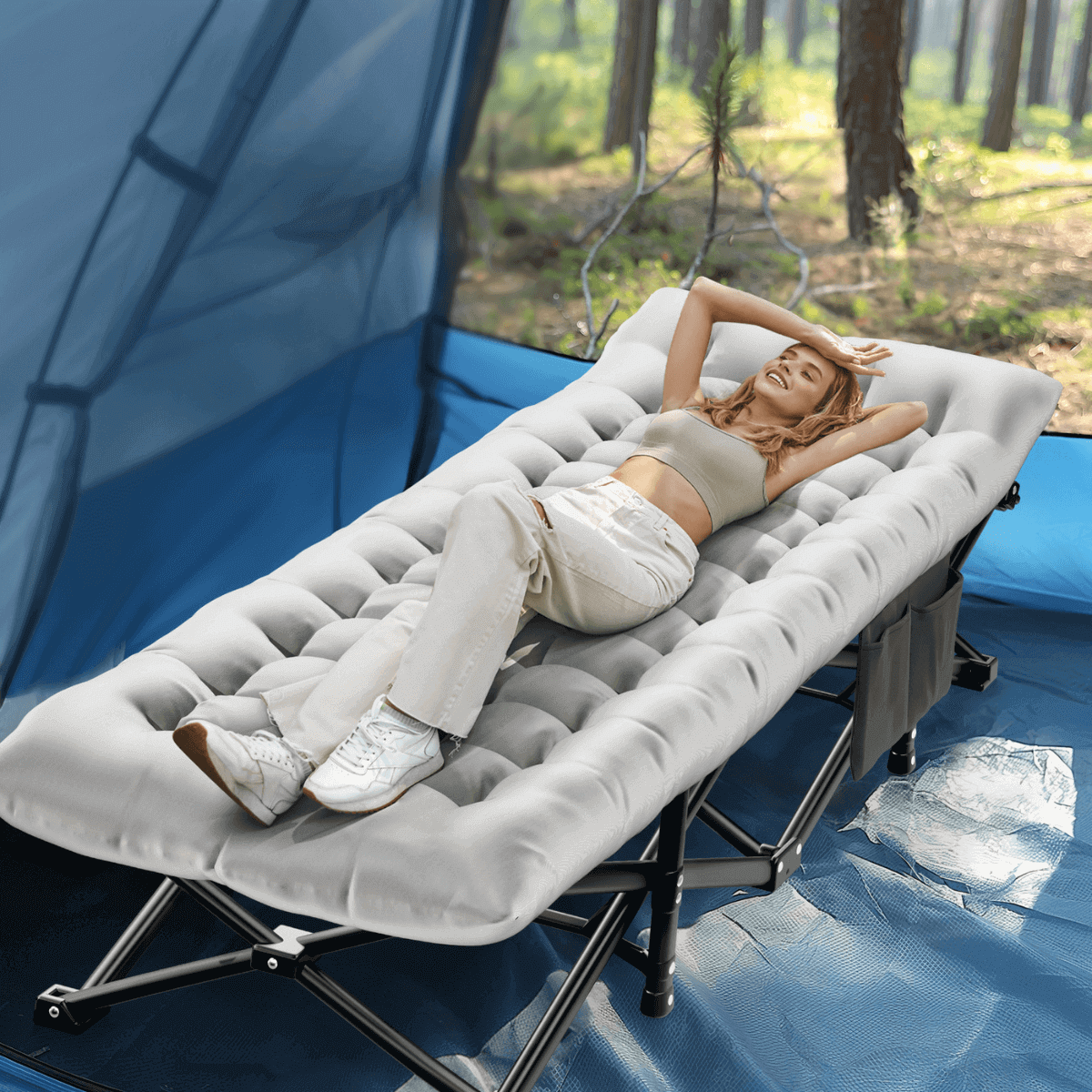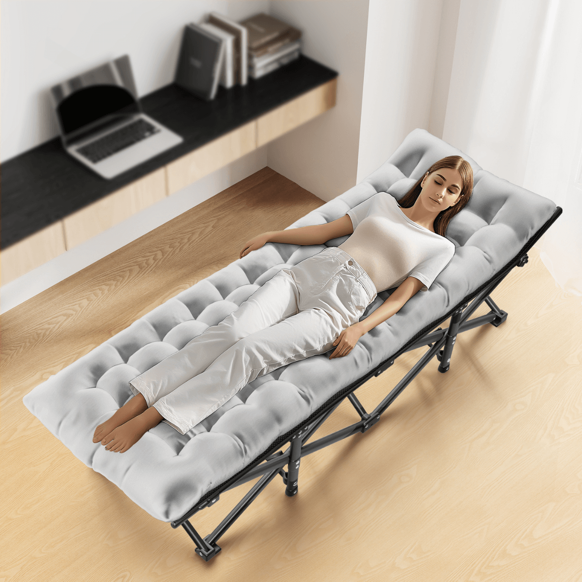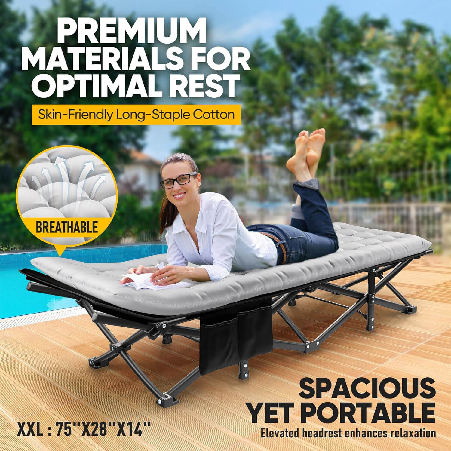 Camping Cots for Adults, Upgraded Folding Camping Cot Heavy Duty Sleeping Cots Bed 1200D Double Layer Oxford Camping Cot Mattress with Flannel Blanket for Home Office Nap Beach Travel, 550LBS
