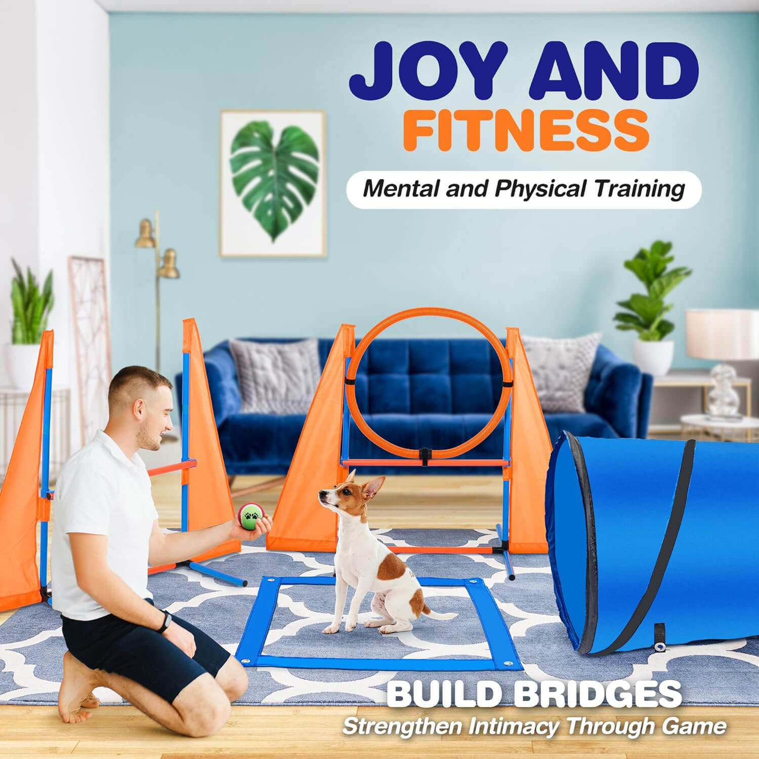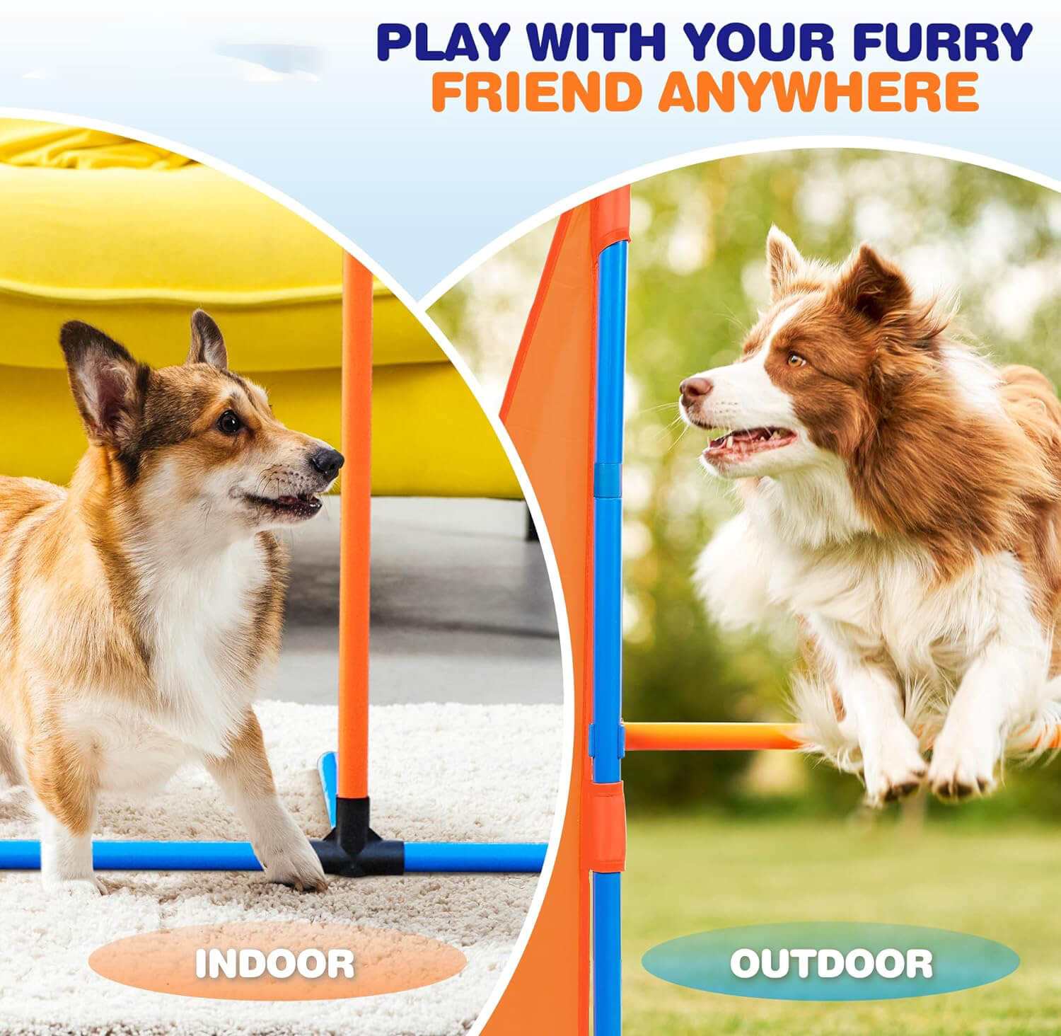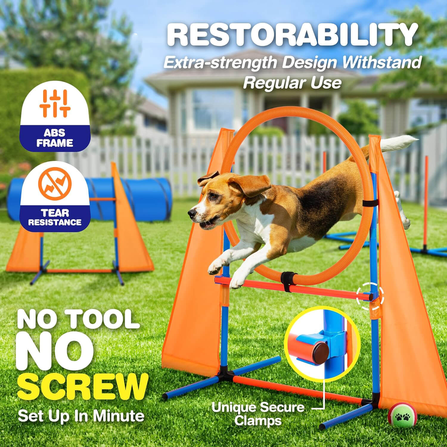 Dog Agility Course Backyard Set, Portable Agility Training Equipment for Dogs - 2 Agility Tunnel, 2 Jumps, 6 Weave Poles, Pause Box & More, Dog Obstacle Course Kit for Indoor and Outdoor