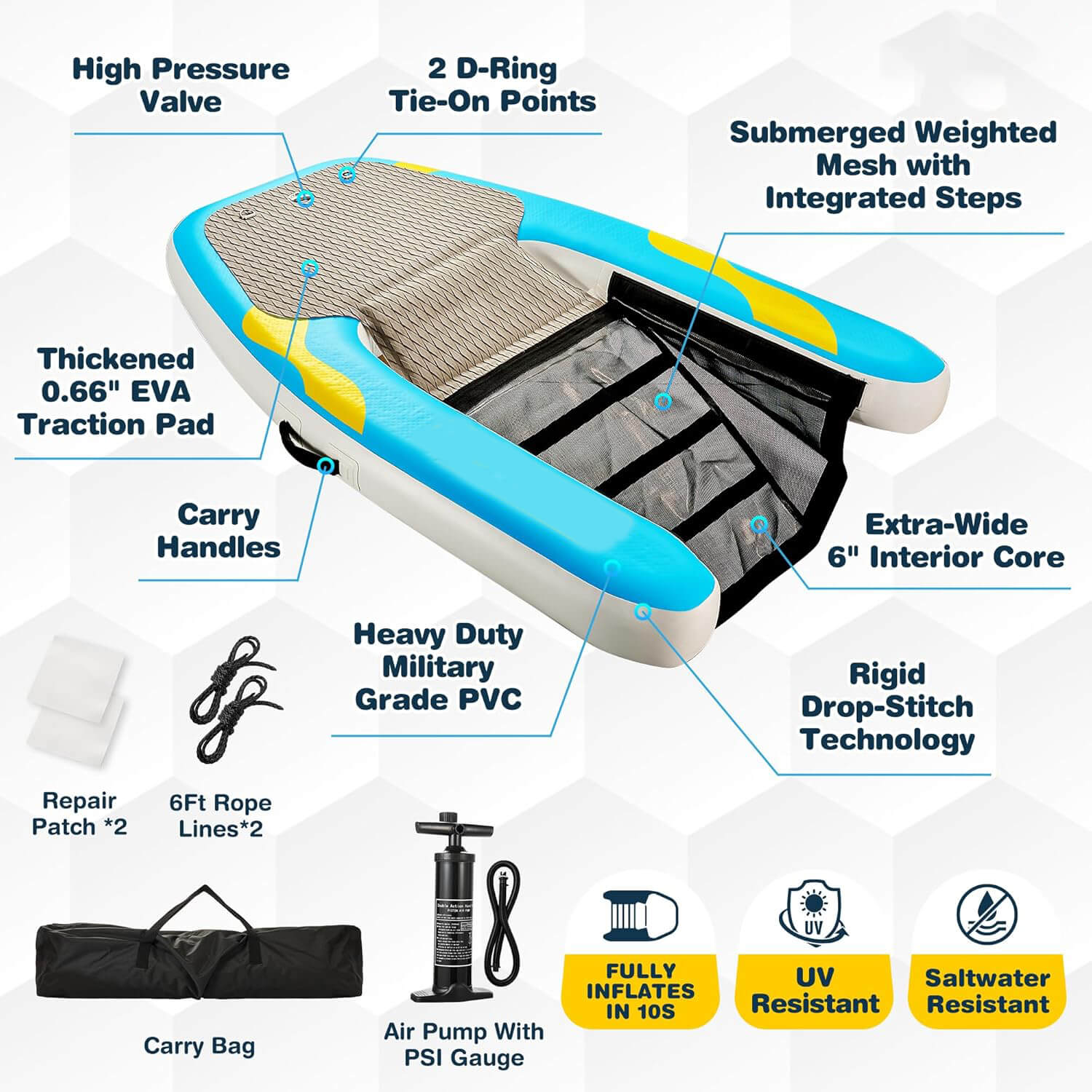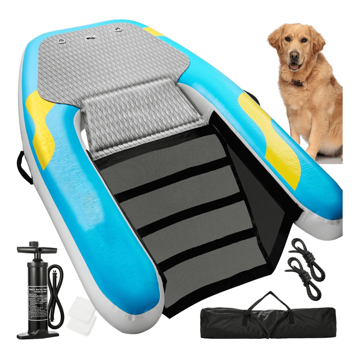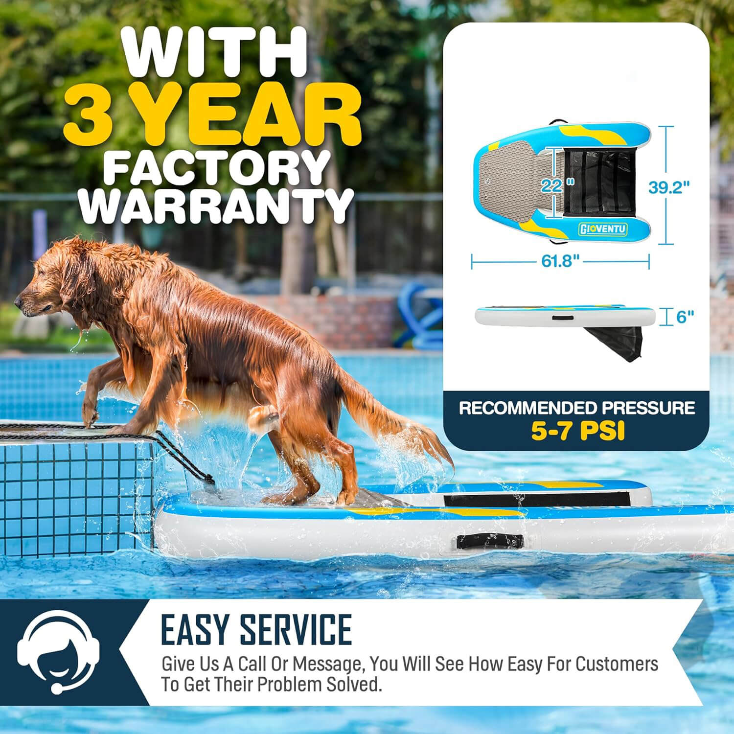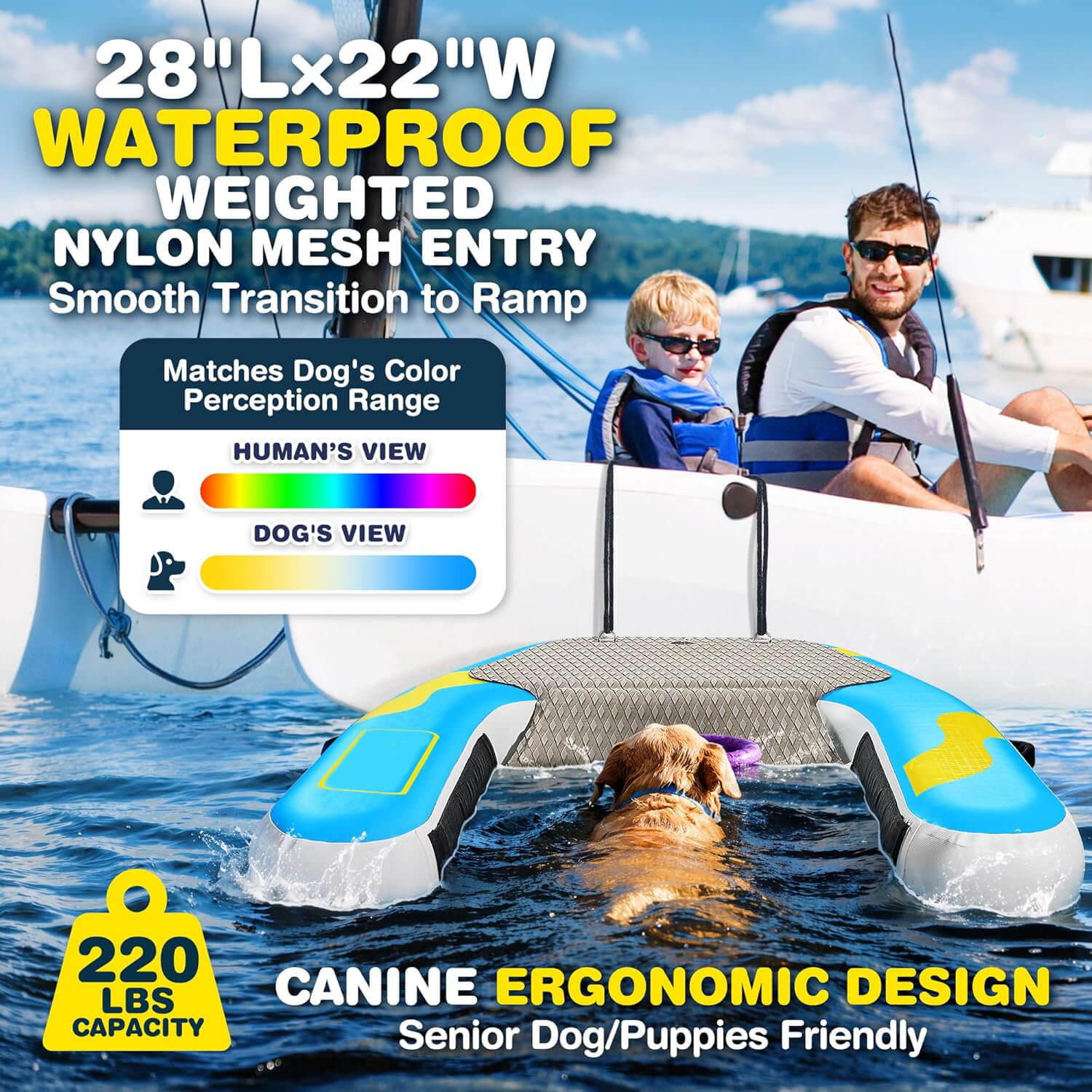 Inflatable Dog Pool Water Ramp, 62"x 40" Extra Large Dog Boat Ramp for Dogs Up to 220 lbs with Innovative 2-in-1 Ramp Assist, Portable Floating Puppy Ladder Docks for Pool Lake