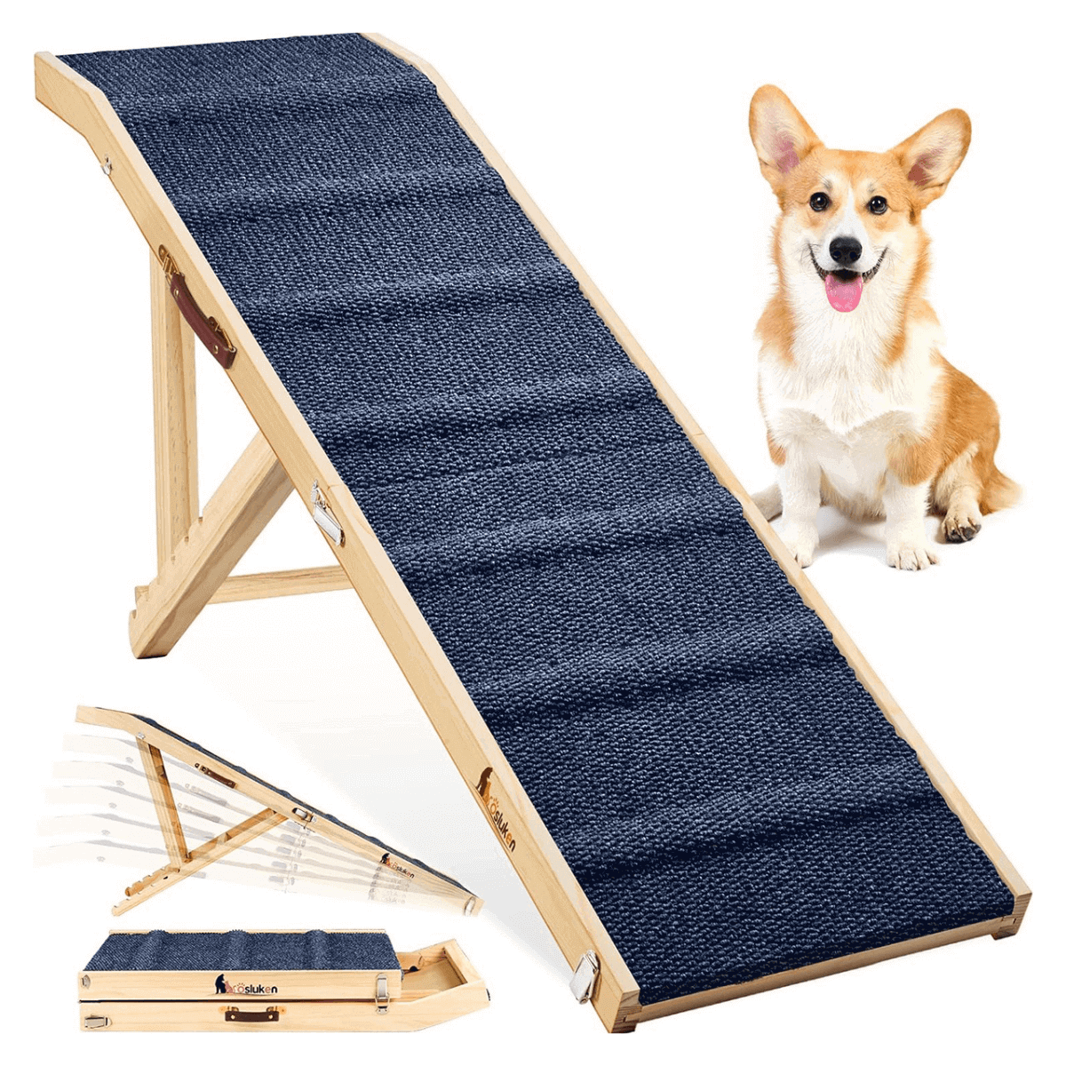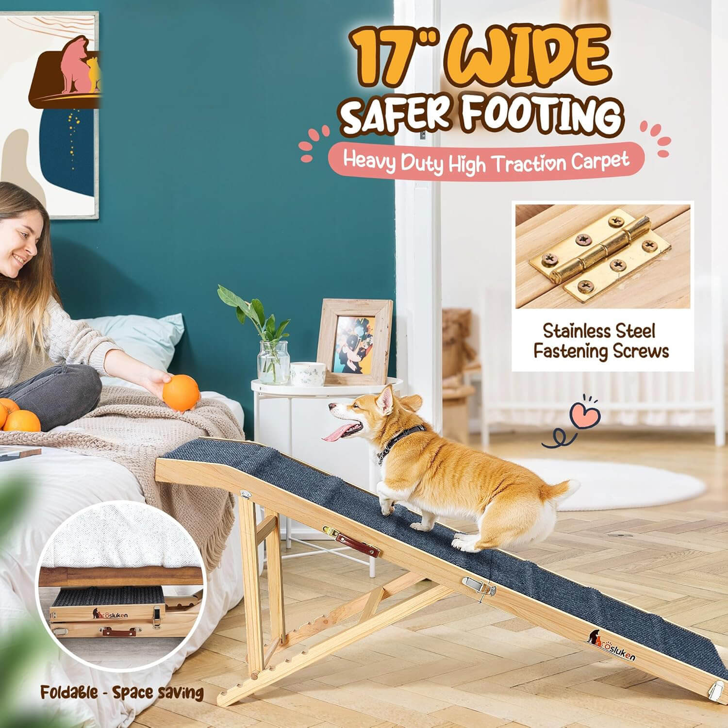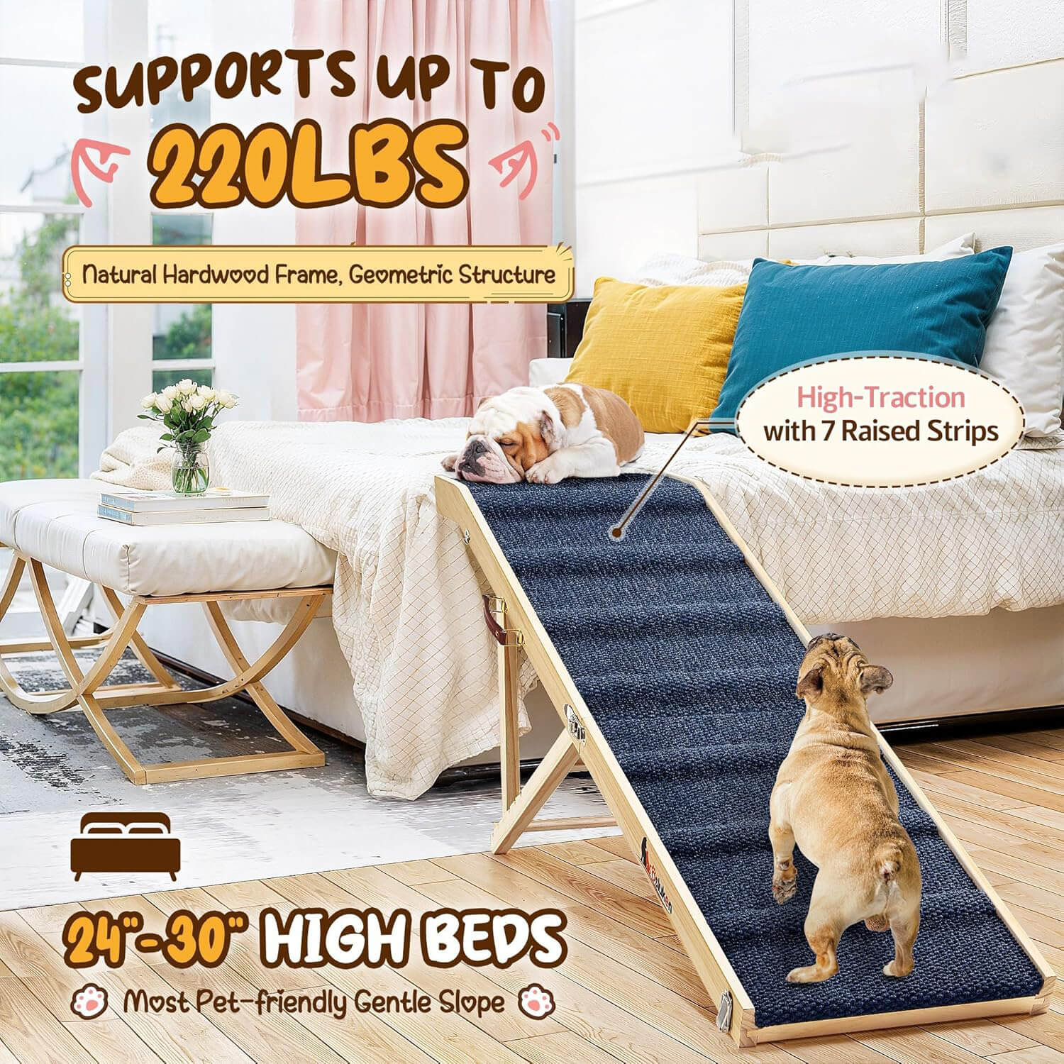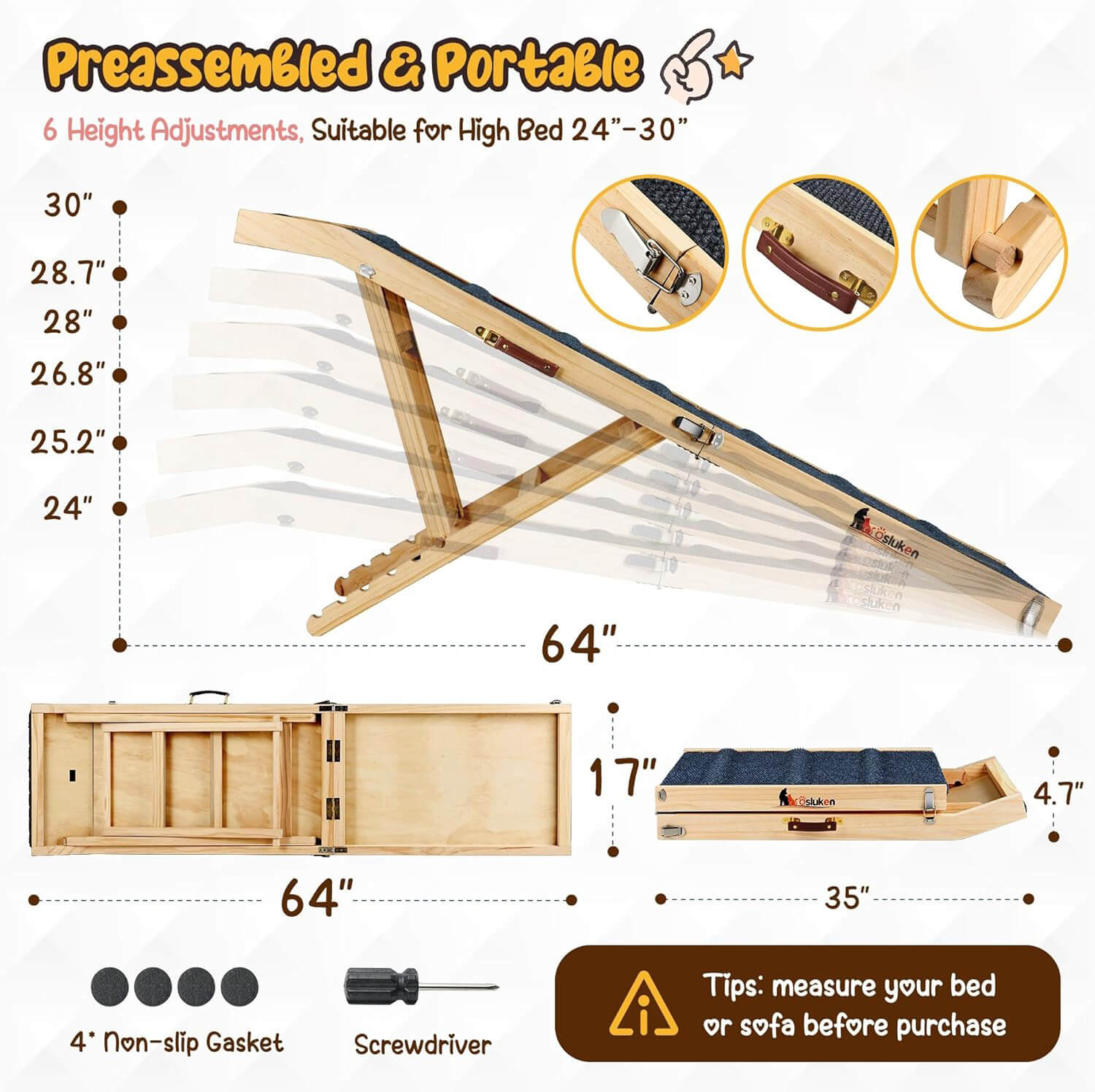 Dog Ramp For Bed, L64 W17 Foldable Pet Ramp For Small Large Dogs Cats, Dog Ramps For High Beds Car, High Traction With Platform 6 Adjustable Heights 24" To 30" Up To 220lbs