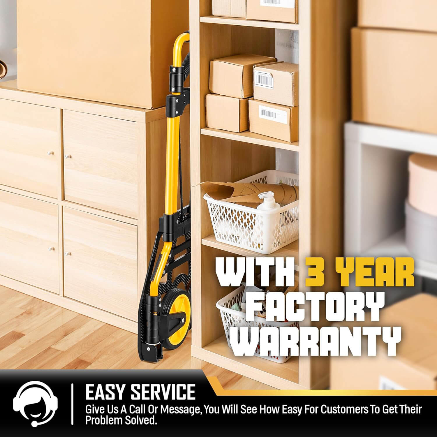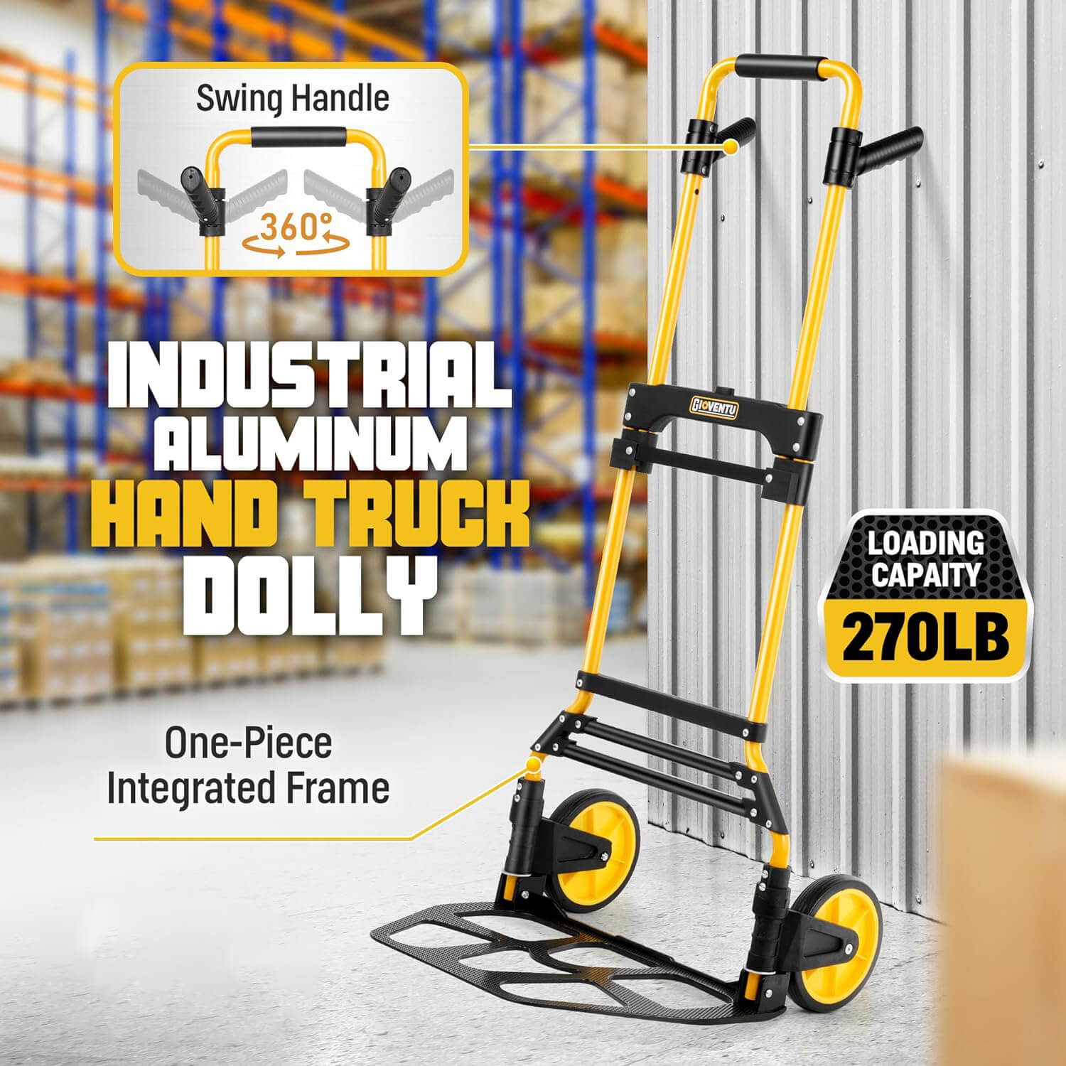 Aluminium Hand Truck Dolly 270LB Capacity, Stair Climbing Dolly Foldable with Silent Rubber Brake-Wheels and Elastic Rope