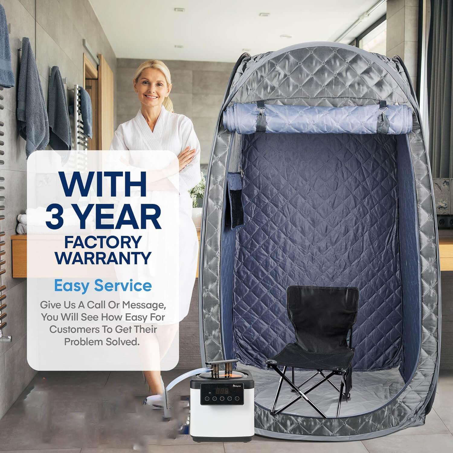 Portable Sauna for Home,2.6L 1000W Portable Steam Sauna Full Size Personal Steam Room, Sauna Tent with Steamer, 90 Minute Timer, Chair, Remote Control (Grey)