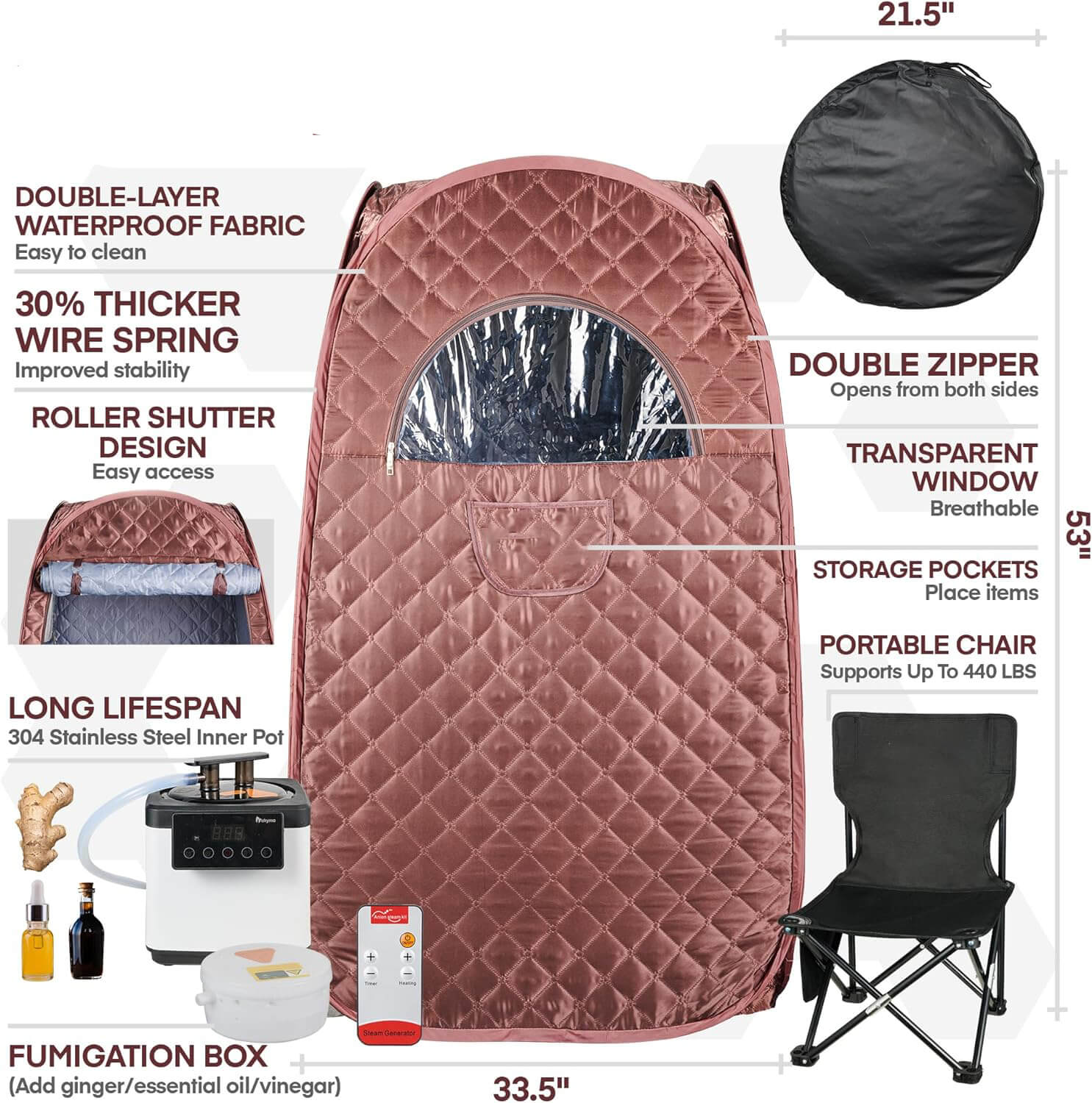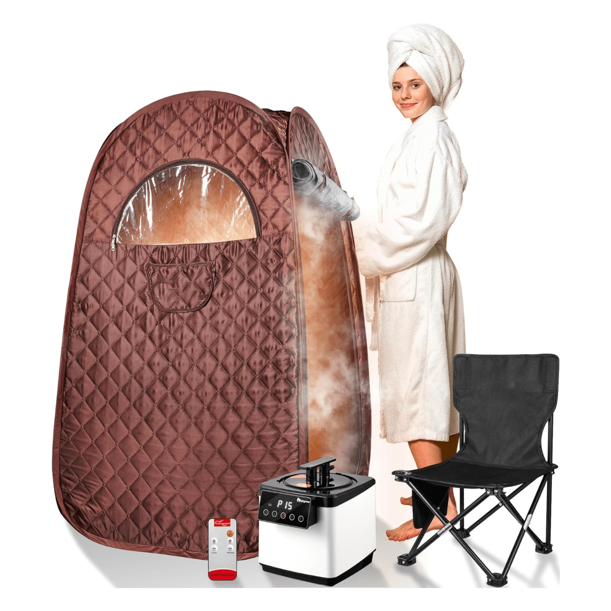 Portable Sauna for Home,2.6L 1000W Portable Steam Sauna Full Size Personal Steam Room, Sauna Tent with Steamer, 90 Minute Timer, Chair, Remote Control (Brown)