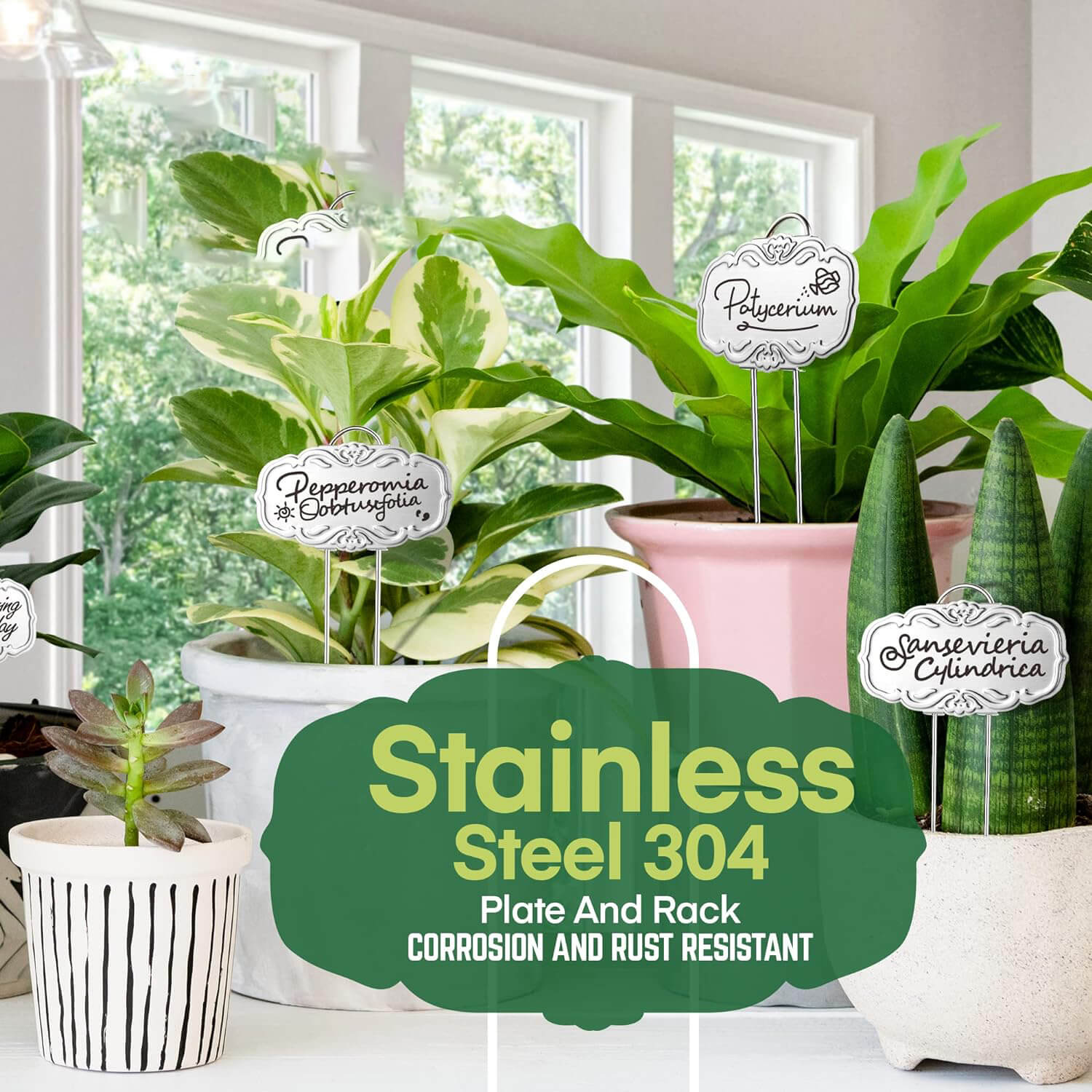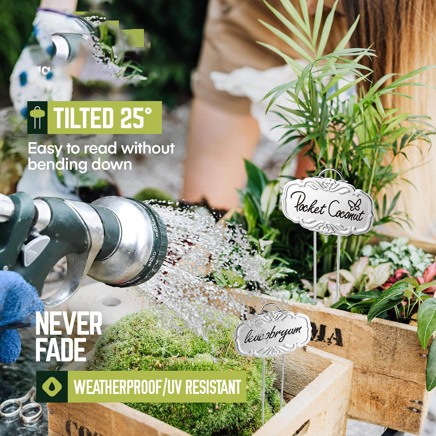 Metal plant markers are made of rust and corrosion-resistant Stainless Steel ss304 and last for decades when exposed outdoors, giving you long-lasting peace of mind. While carbon steel with coating can only last months.