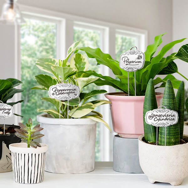 The whimsical arch design creates a warm and romantic garden atmosphere. Each nameplate measures 3.74x1.39 inches, allowing for plenty of space to write on. The sturdy 10.75” double-pronged stakes are easy to insert into the soil and read the labels from a standing position.