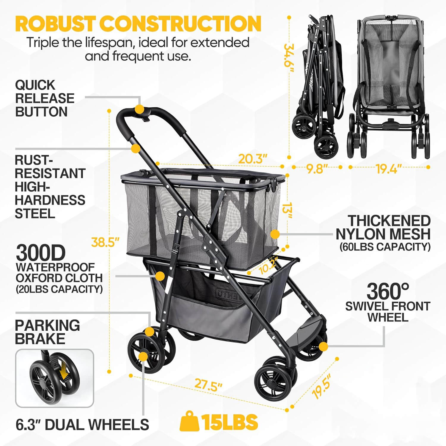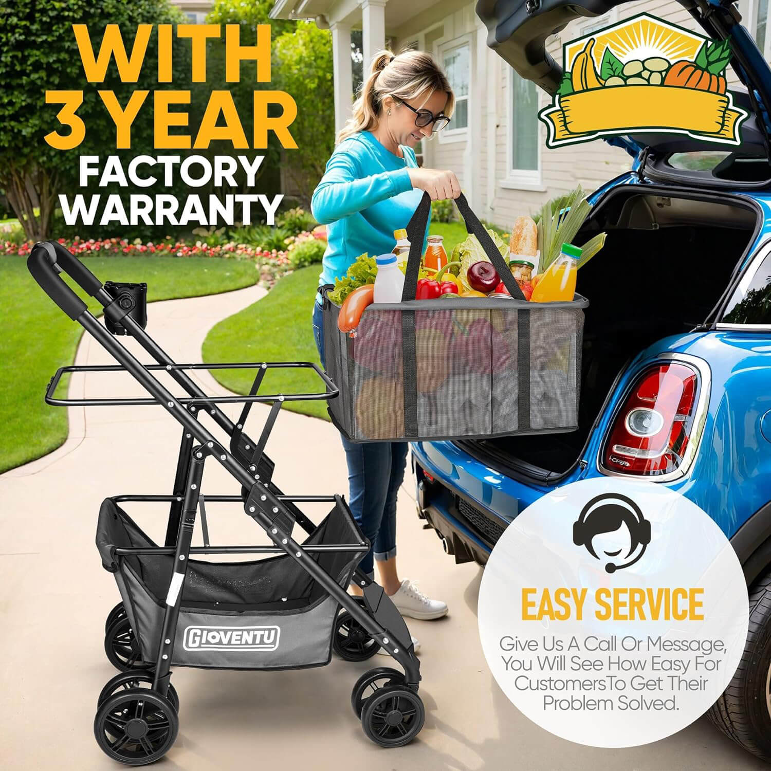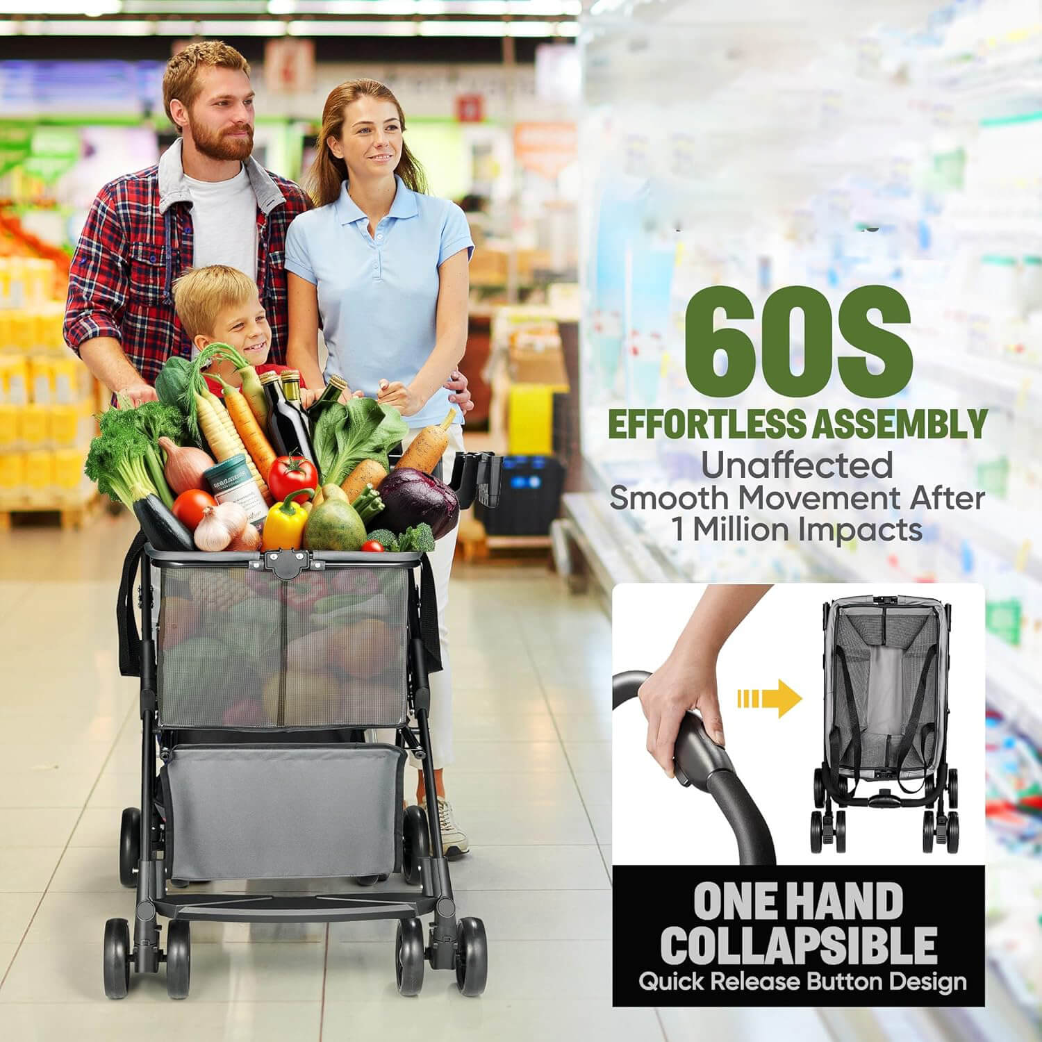 Folding Shopping Cart with Wheels, 80lbs Multi-Use Grocery Carts with 360° Wheels & Removable Tote Bag, Multifunctional Portable Personal Shopping Carts for Groceries
