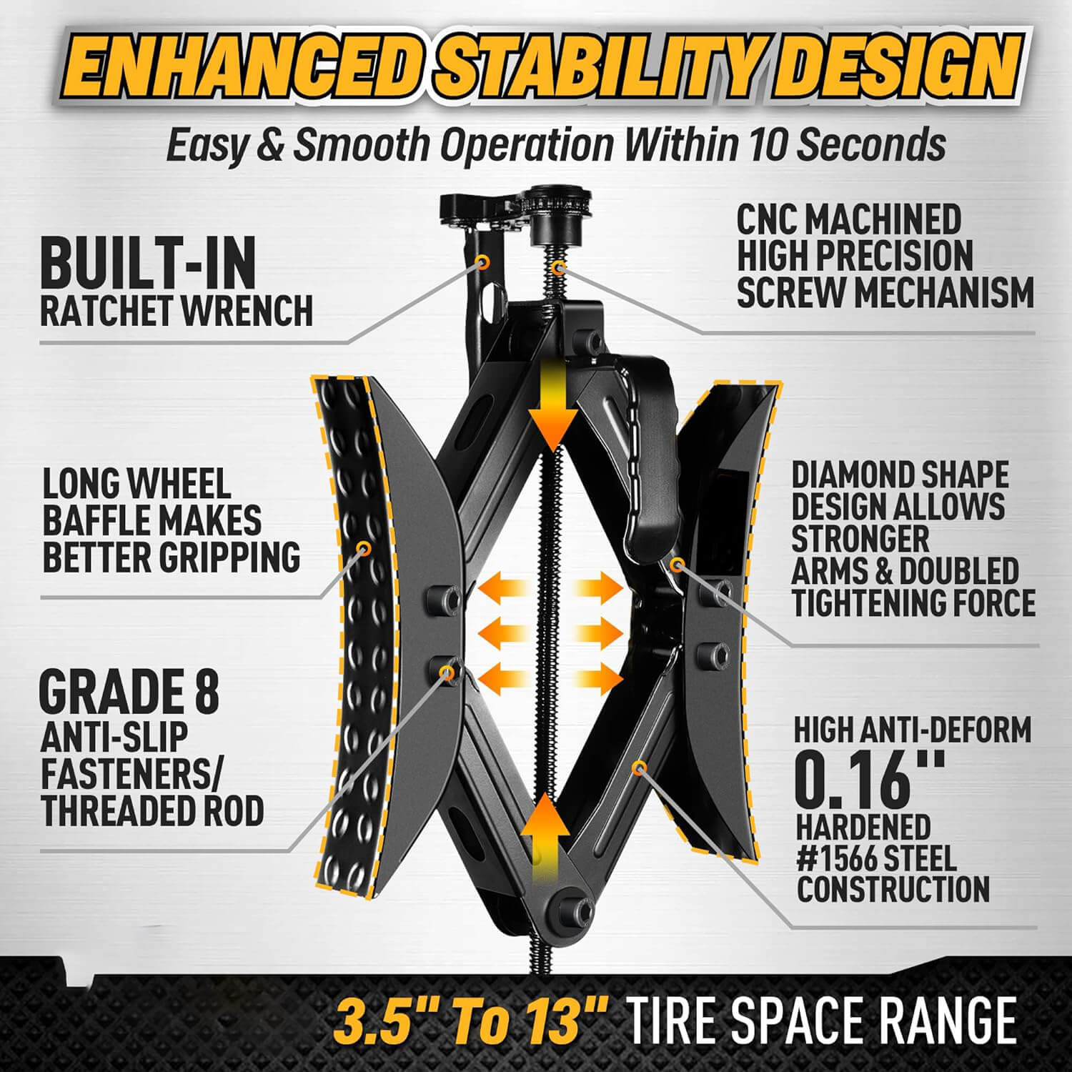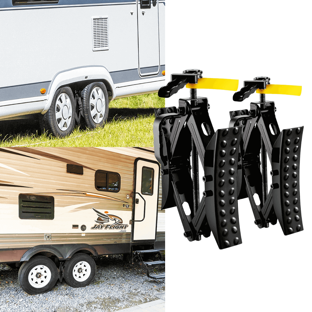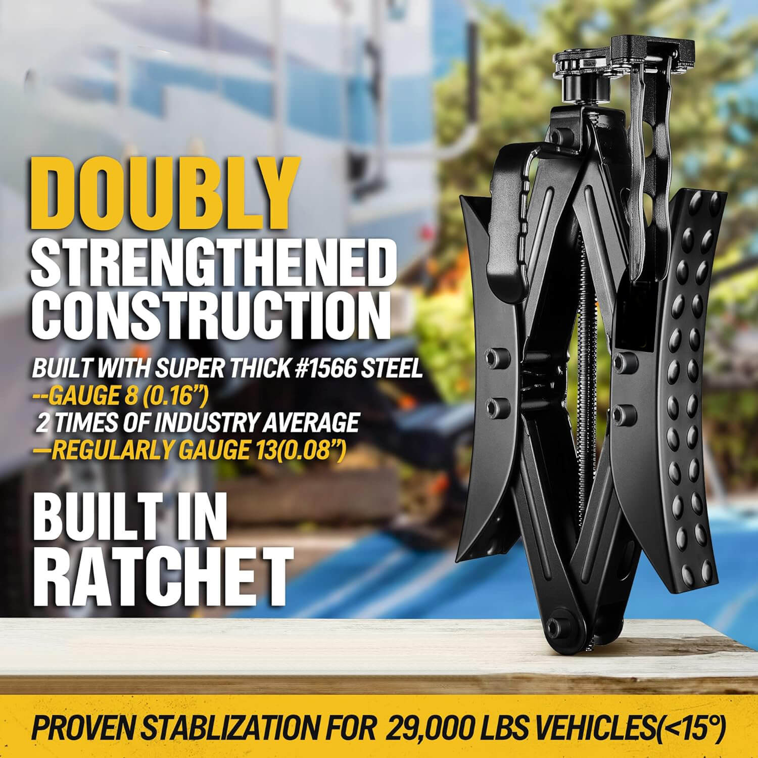 X-Chock Wheel Stabilizer with Built-in Wrench, Double Thickness Heavy-Gauge Steel X-Shaped RV Stabilizer Wheel Chock for 29,000 lbs Travel Trailers Vehicles